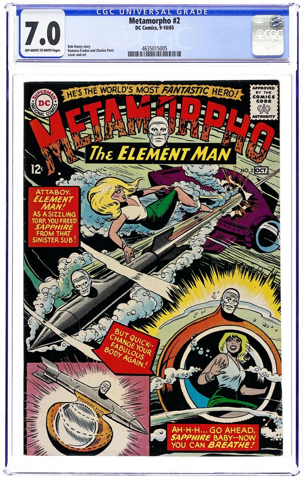 $16.00Cover pencils by Ramona Fradon, inks by Charles Paris. Terror from the Telstar, script by Bob Haney, pencils by Ramona Fradon, inks by Charles Paris; Stagg rescues Metamorpho from the fate of the previous issue; Criminals start a crime wave after taking over the Telstar satellite. Nature's Bill of Rights public service announcement on pollution, script by Jack Schiff, art by Sheldon Moldoff. 36 pgs. $0.12. Cover price $0.12.