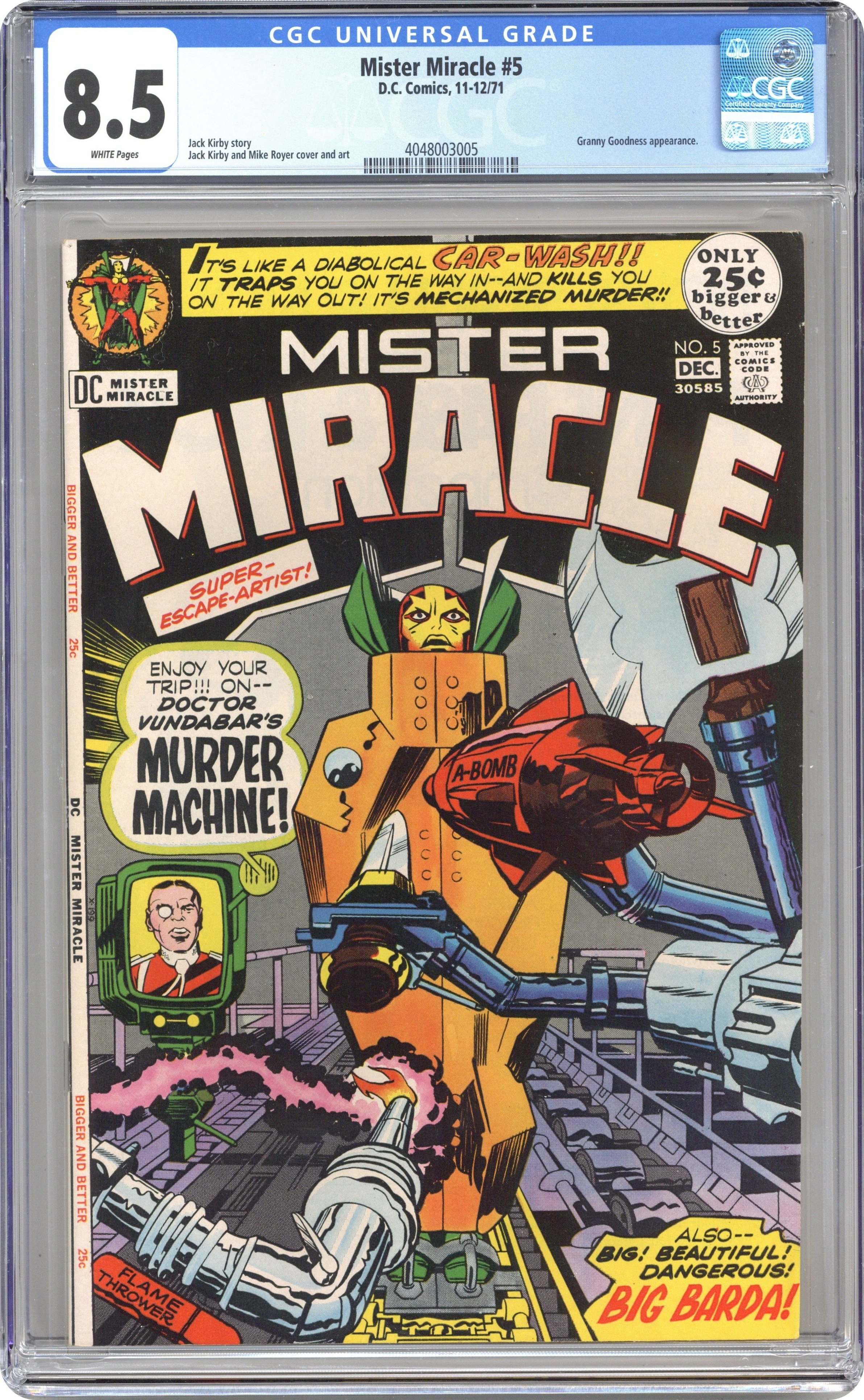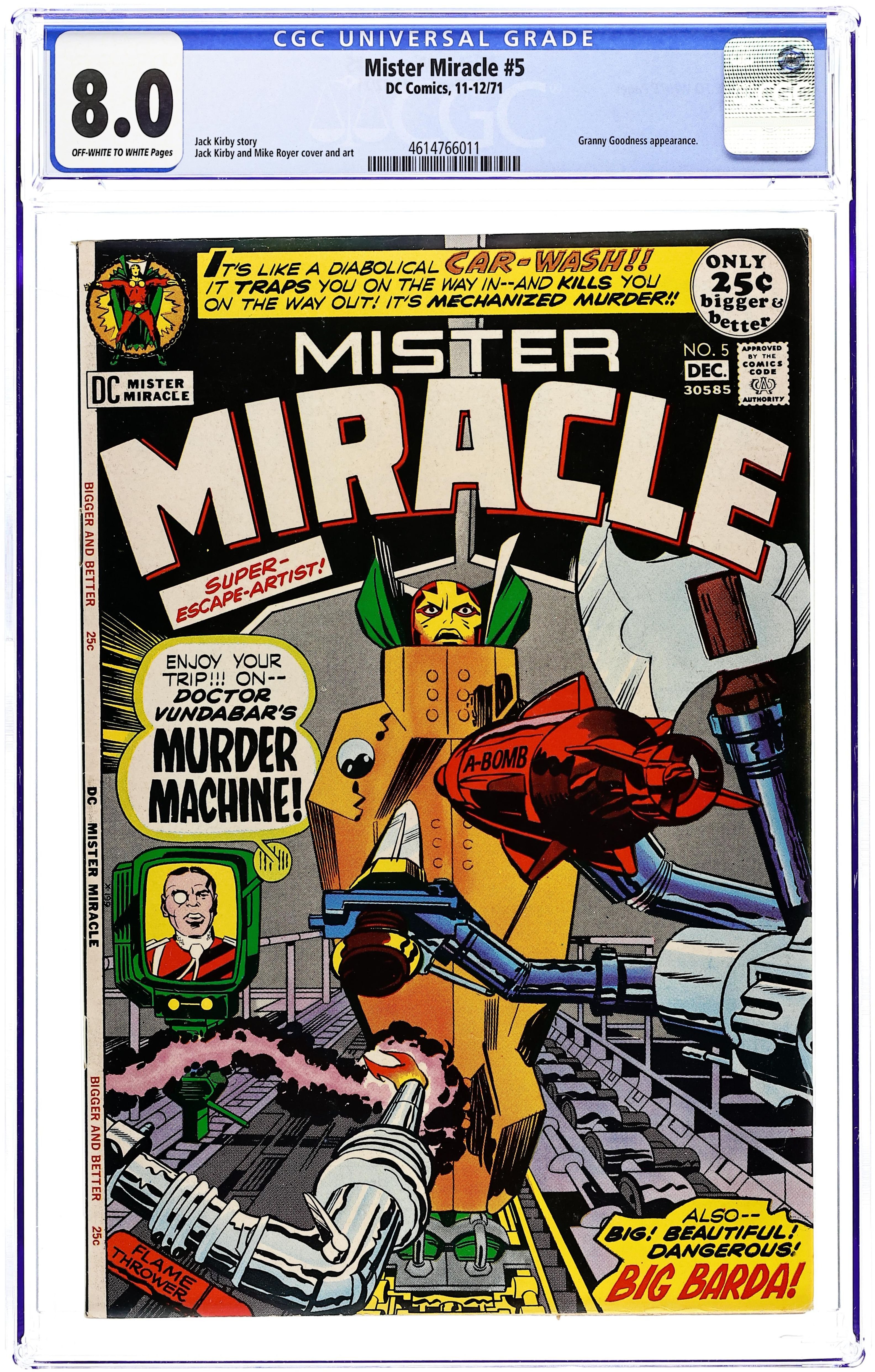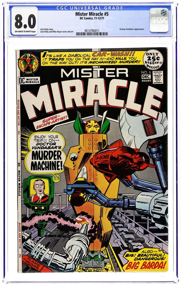 "Murder Machine." Virman Vundabar captures Big Barda, who proves to be the perfect bait for Mister Miracle. Script, pencils, and cover by Jack Kirby. Inks by Mike Royer. Cover price $0.25.