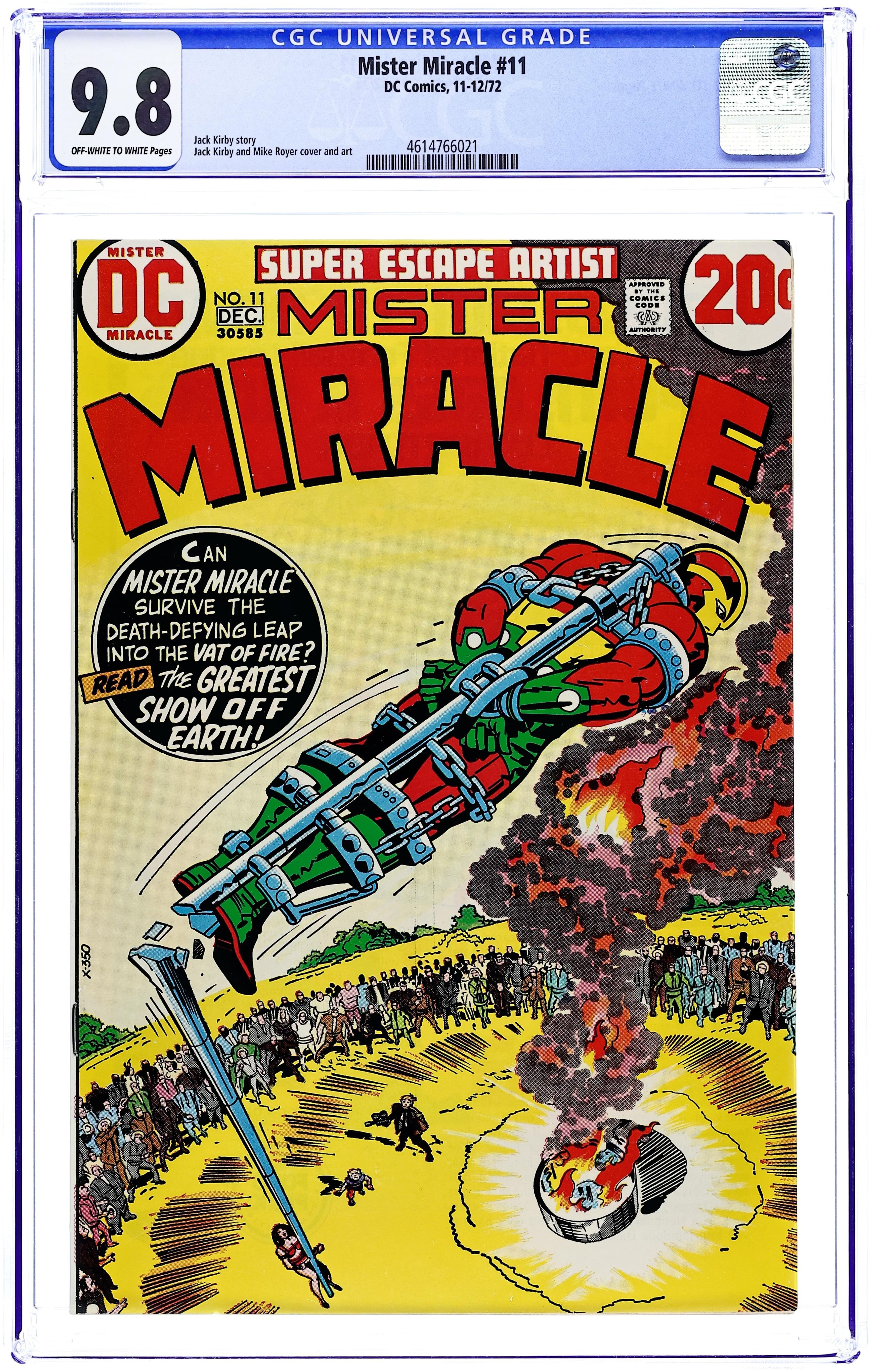 "The Greatest Show Off Earth!" Mister Miracle must escape Dr. Bedlam's trap, which is an airborne bomb in outer space. Script, pencils, and cover by Jack Kirby. Inks by Mike Royer. Cover price $0.20.