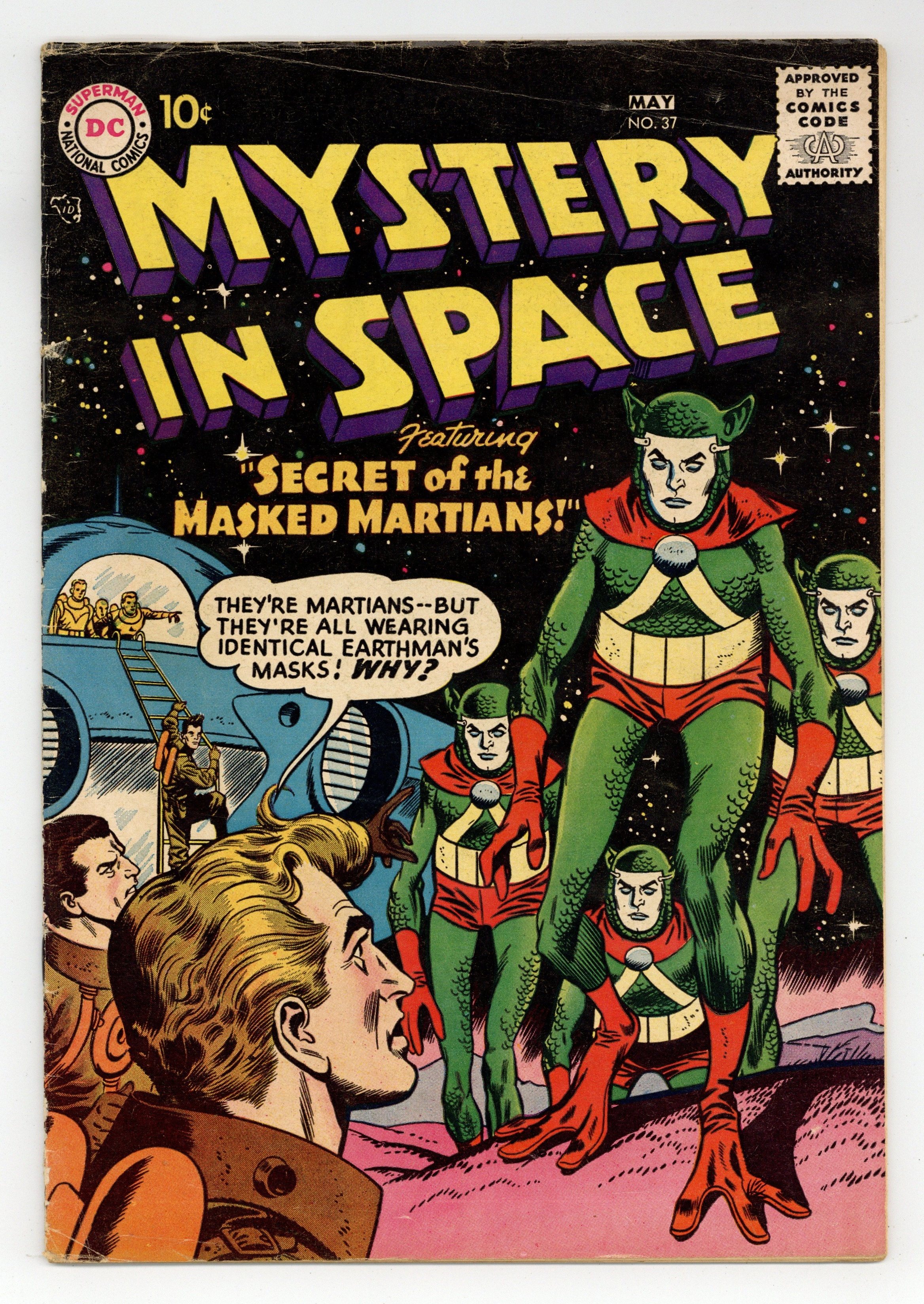 $37.00"Secret of the Masked Martians," "The Greatest Thrill on Earth" (art by Carmine Infantino), "One-Way Ride to Eternity" (pencils by Gil Kane), and "21st Century Hercules." Kane cover pencils. 36 Pages, Full Color. Cover price $0.10.
