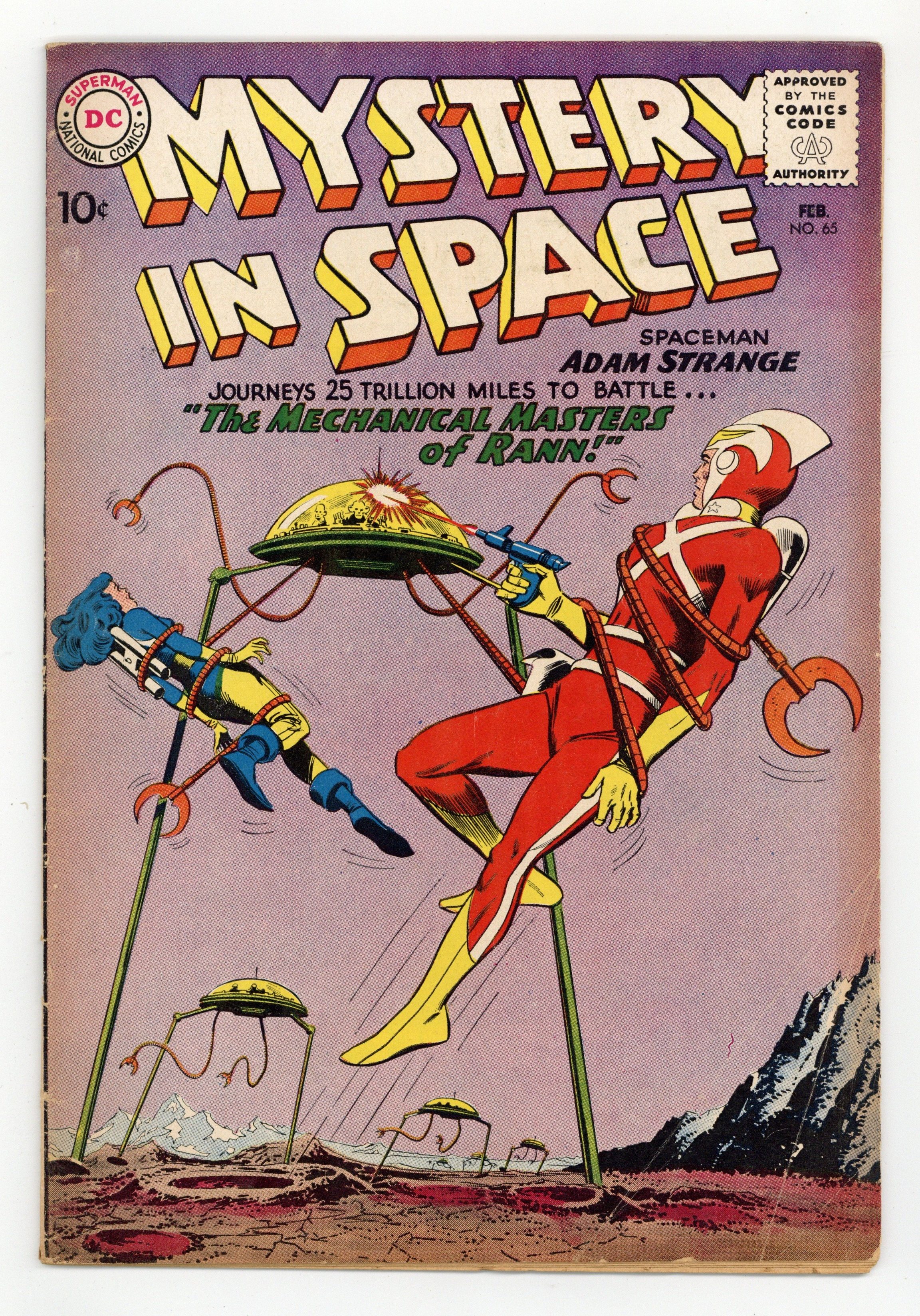 Adam Strange stars in "The Mechanical Masters of Rann" (pencils by Carmine Infantino). Back-up stories: "Weapon of the Great Brains!" (art by Sid Greene?) and "Our Home is in the Stars!" Infantino cover pencils. 36 Pages, Full Color. Cover price $0.10.