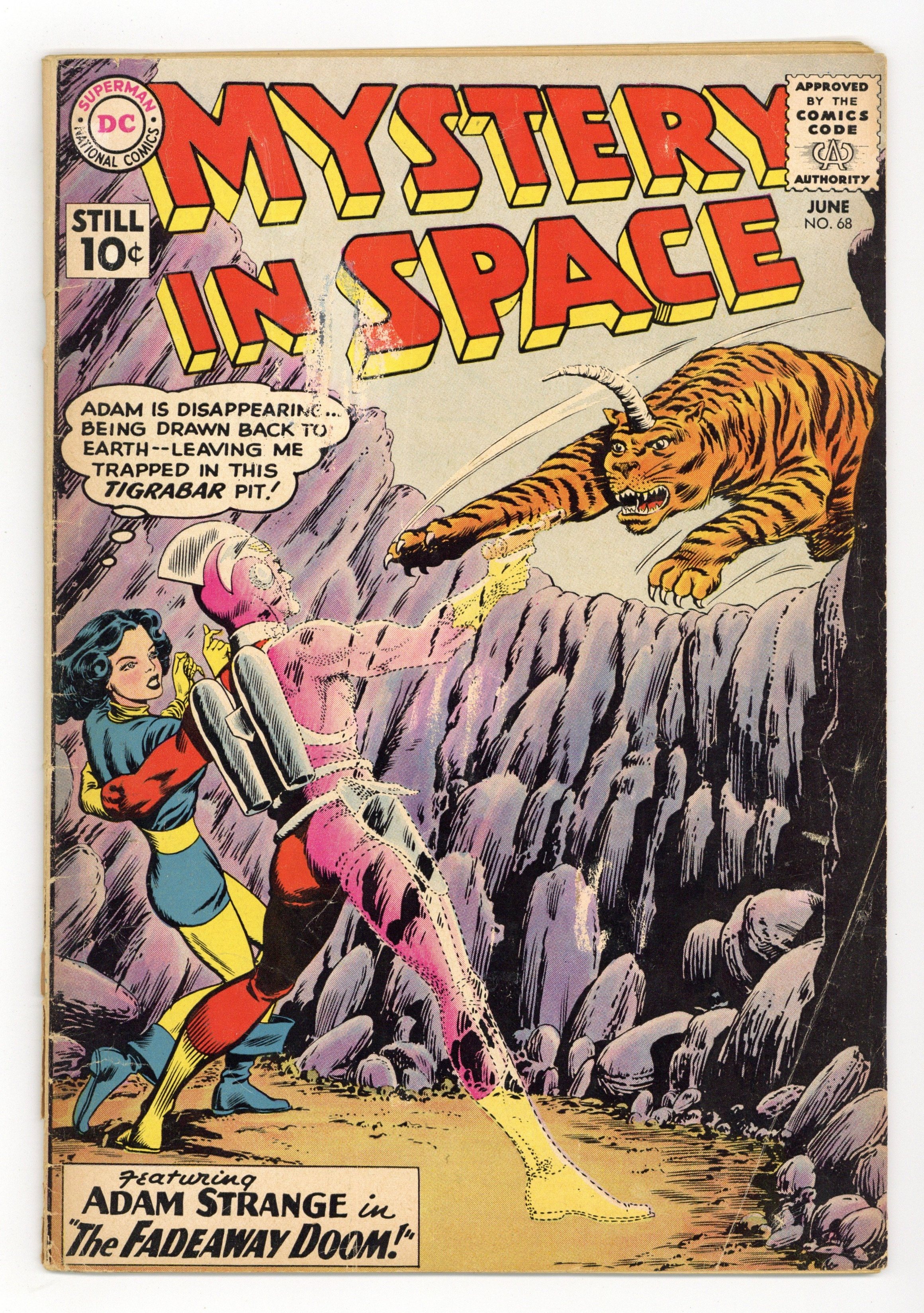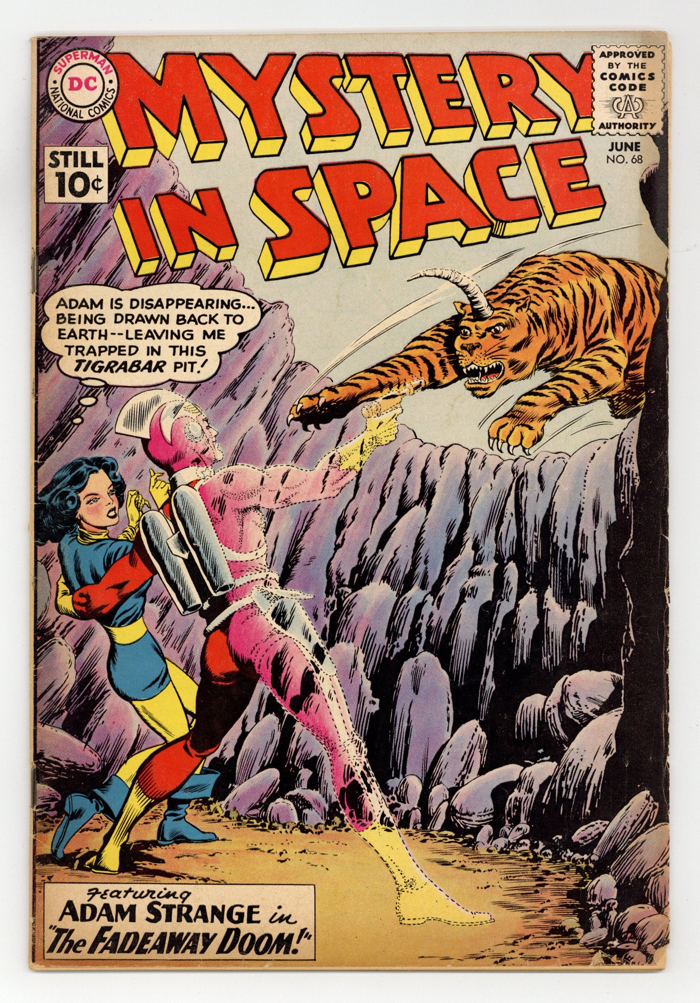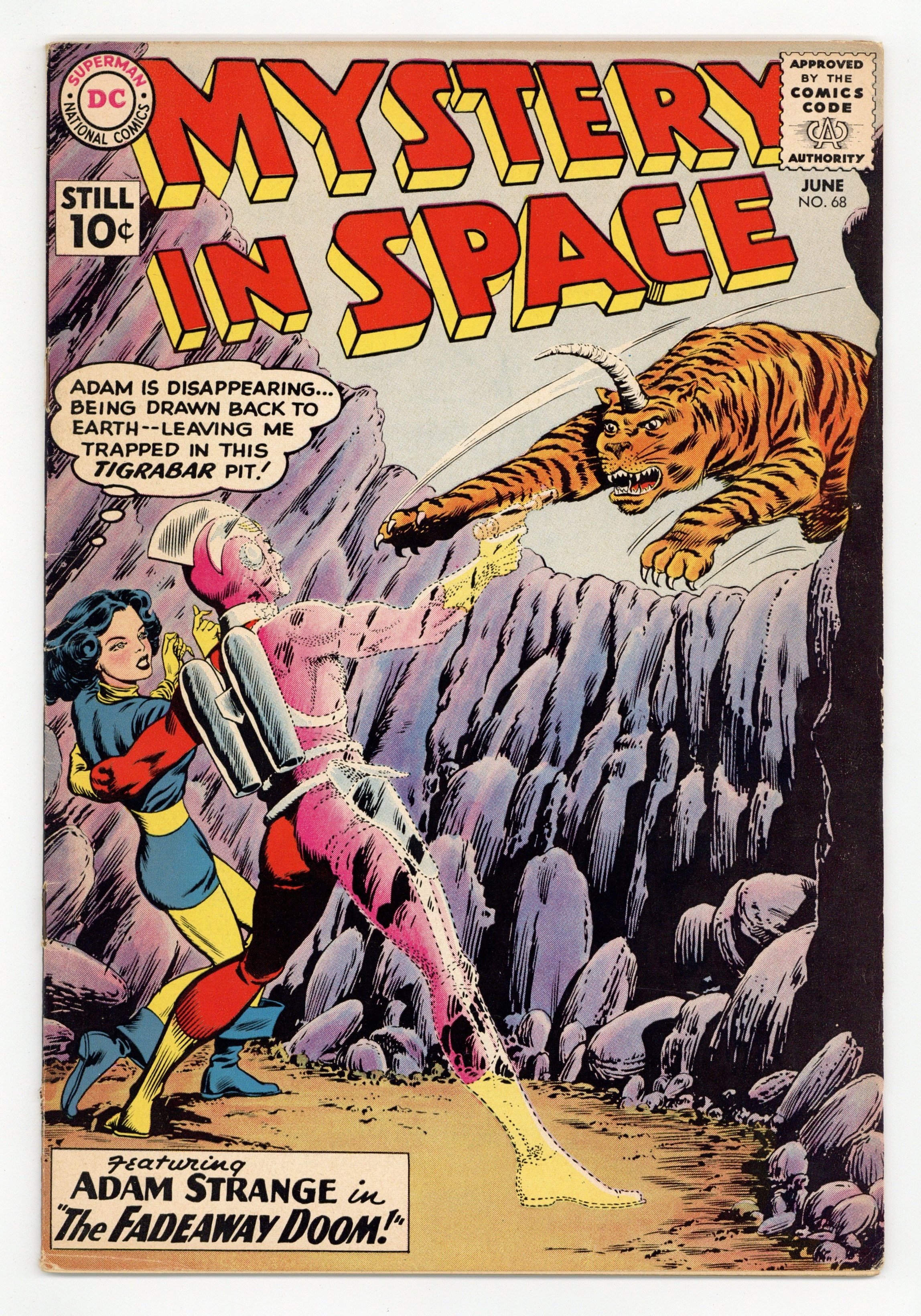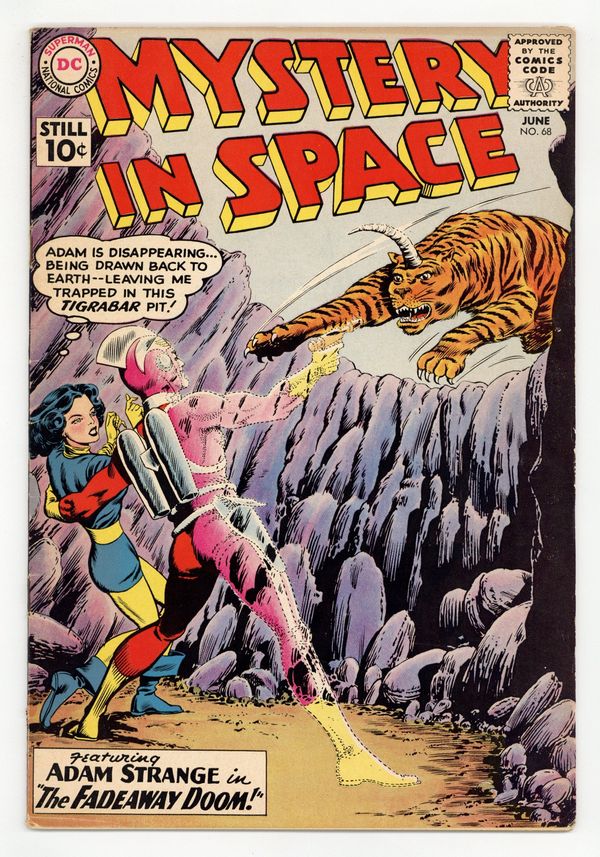 Adam Strange stars in "The Fadeaway Doom!" (pencils by Carmine Infantino). Back-up stories: "The Sleeping Peril of Mars!" (art by Sid Greene?) and "Captain Baboon's Space-War!" Infantino cover pencils. 36 Pages, Full Color. Cover price $0.10.
