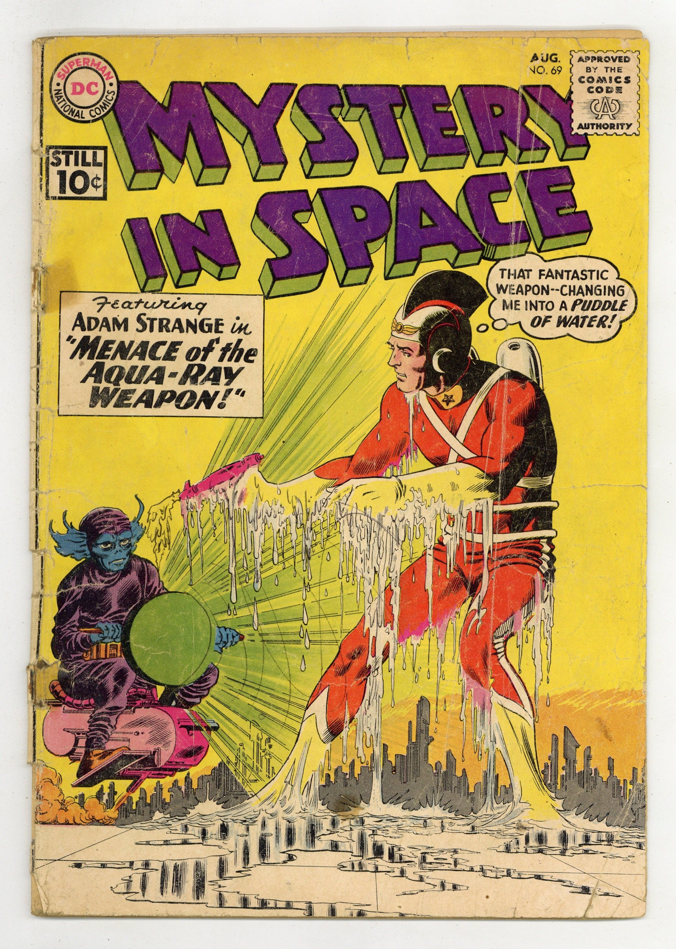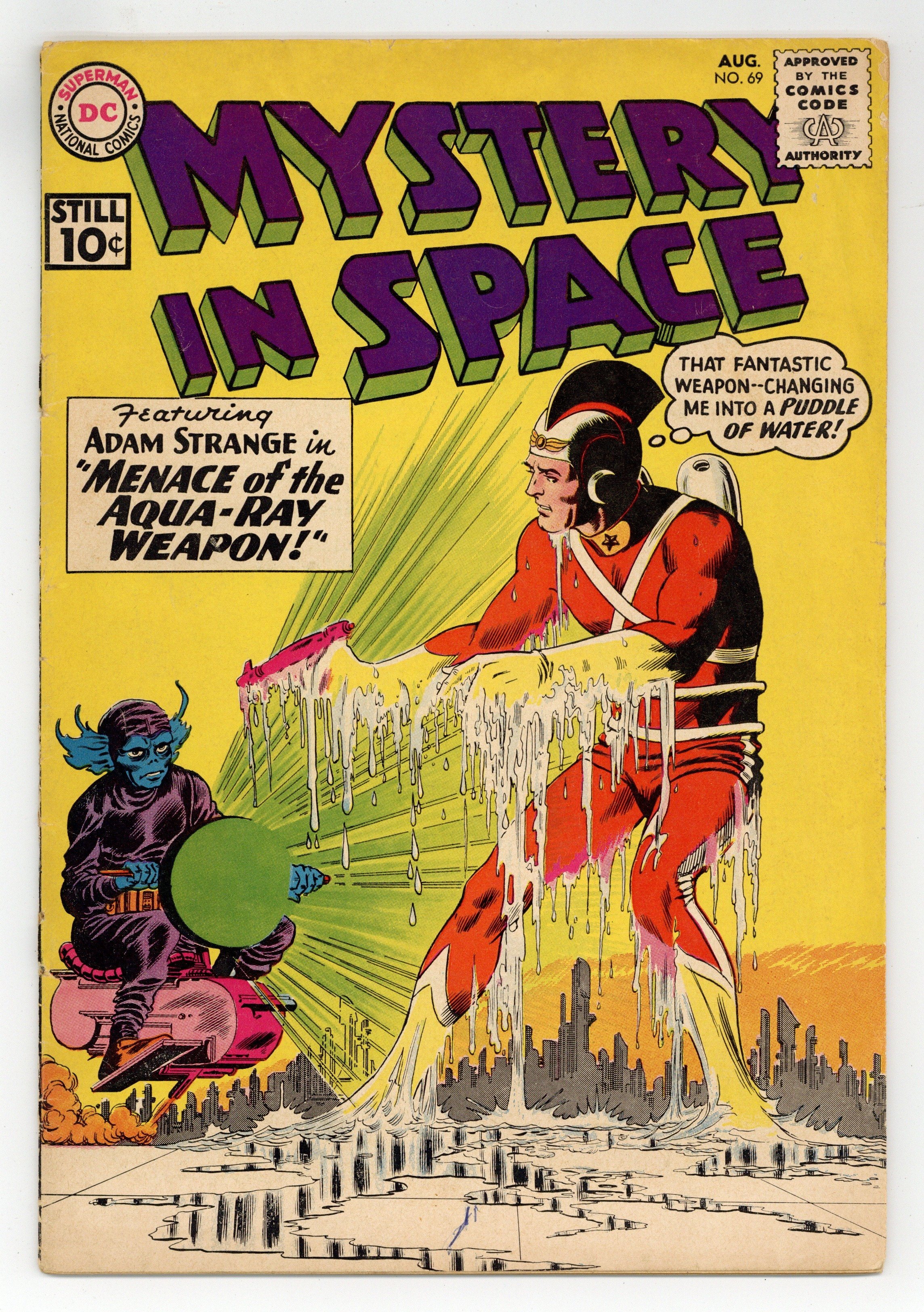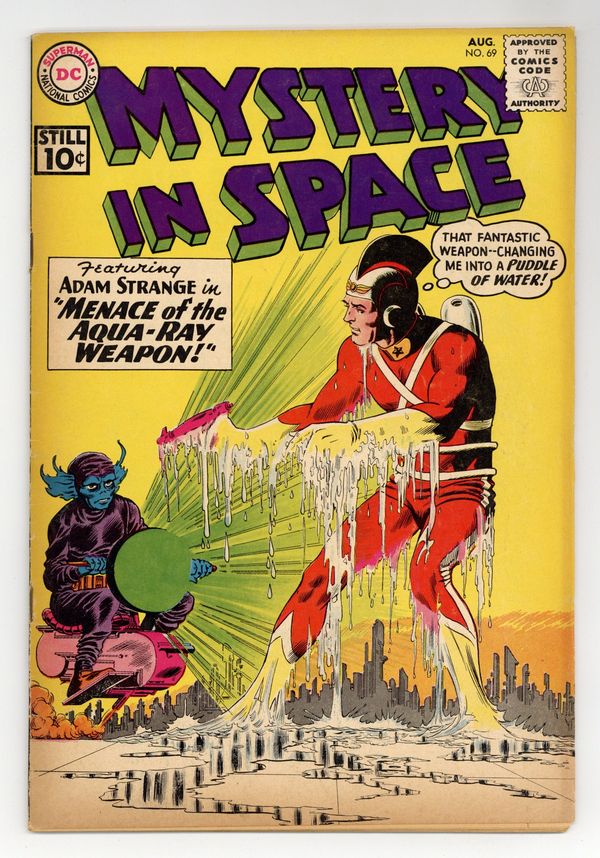 Adam Strange stars in "Menace of the Aqua-Ray Weapon!" (pencils by Carmine Infantino). Back-up stories: "Duel of the Star Gladiators!" and "What Happened on Sirius-4?" (art by Sid Greene?). Infantino cover pencils. 36 Pages, Full Color. Cover price $0.10.