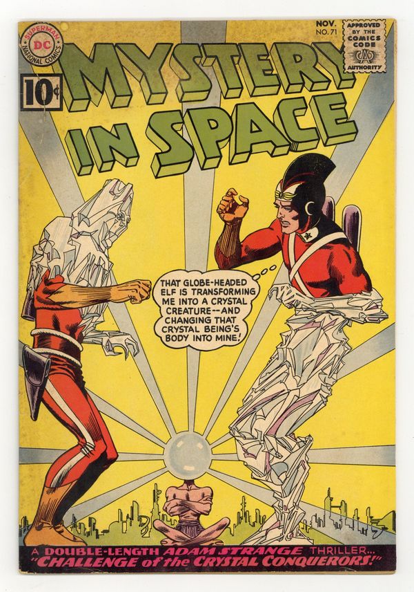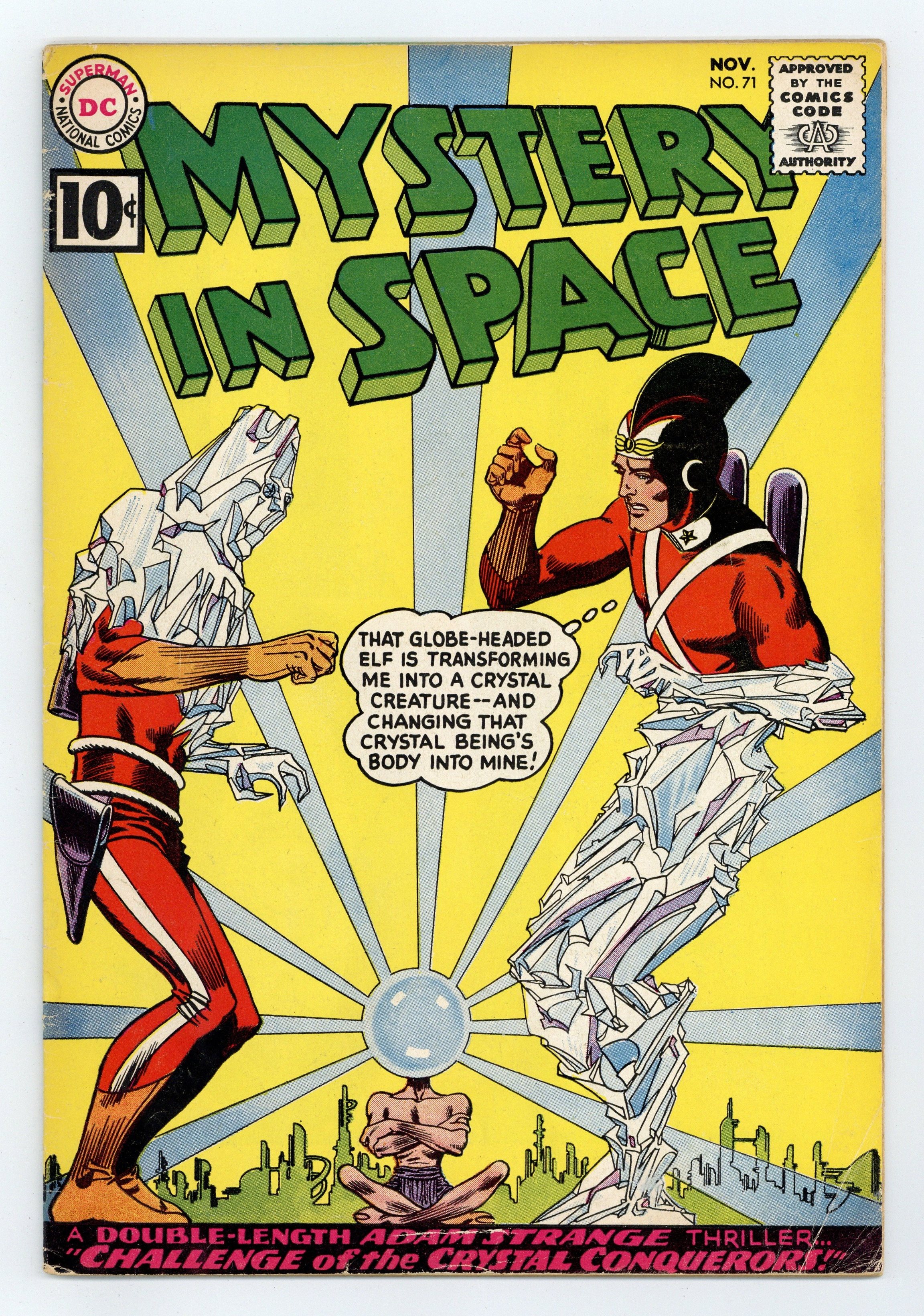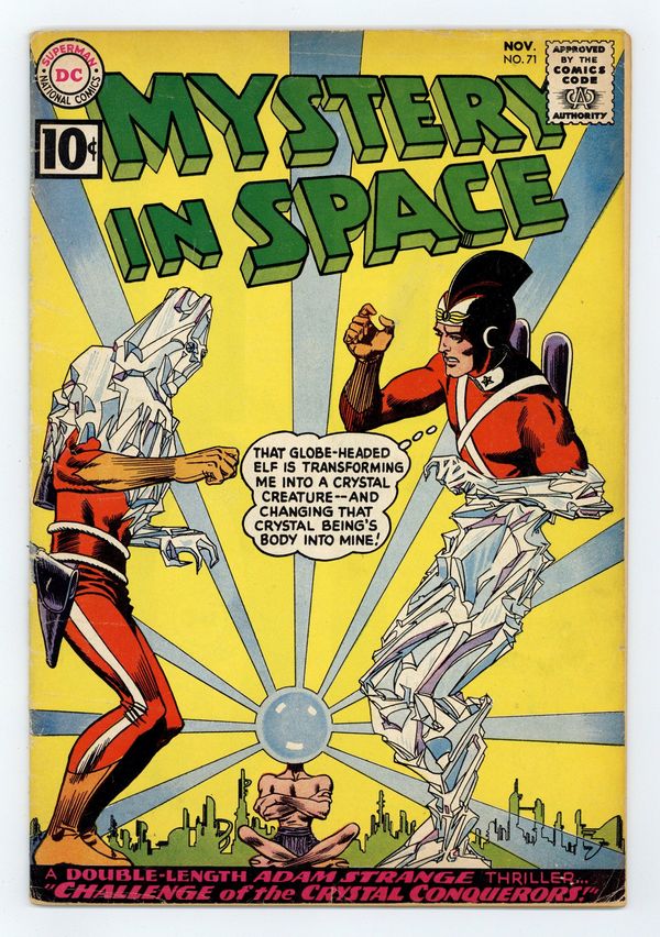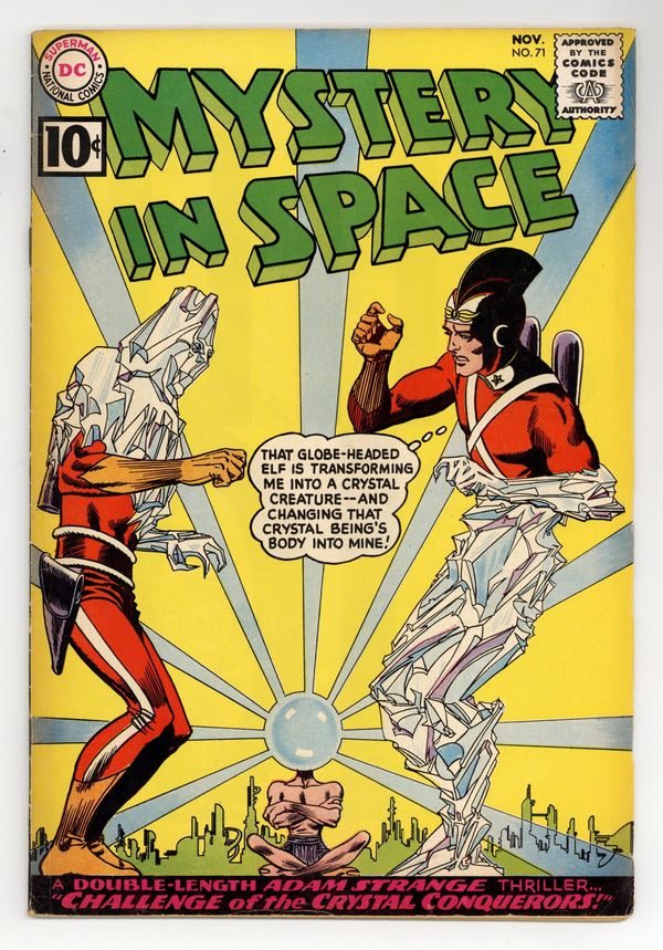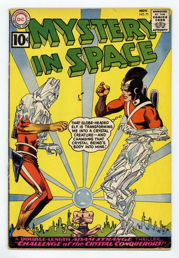 Last 10-cent cover-price. Adam Strange stars in "The Challenge of the Crystal Conquerors!" (pencils by Carmine Infantino). Back-up story: "The Last Space-Feud!" (art by Sid Greene?). Infantino cover pencils. 36 Pages, Full Color. Cover price $0.10.