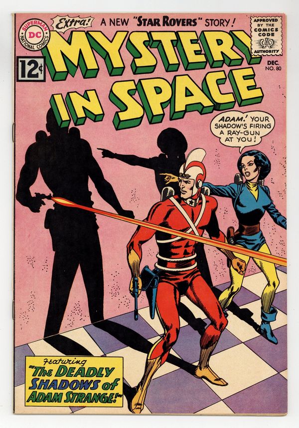 Adam Strange stars in "The Deadly Shadow of Adam Strange!" (script by Gardner Fox, pencils by Carmine Infantino, inks by Murphy Anderson). Star Rovers back-up story "Who Saved the Earth!" (art by Sid Greene). Letter to the editor from Buddy Saunders, longtime comics fan and owner of MyComicShop. Infantino/Anderson cover. 36 Pages, Full Color. Cover price $0.12.