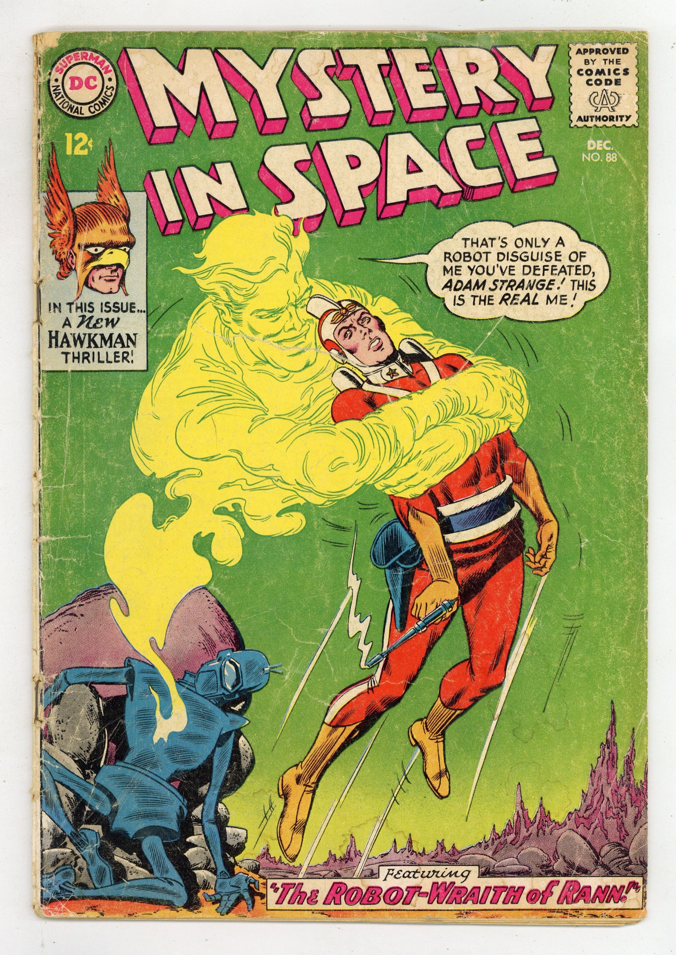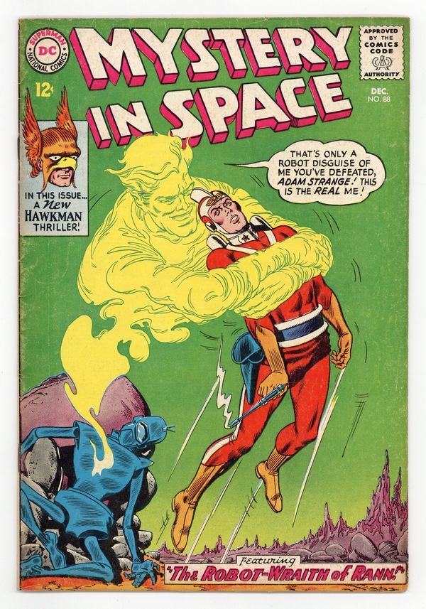 Adam Strange stars in "The Robot-Wraith of Rann!" (script by Gardner Fox, pencils by Carmine Infantino). Hawkman back-up story: "Topsy-Turvy Day in Midway City!" (art by Murphy Anderson). Infantino/Anderson cover. 36 Pages, Full Color. Cover price $0.12.