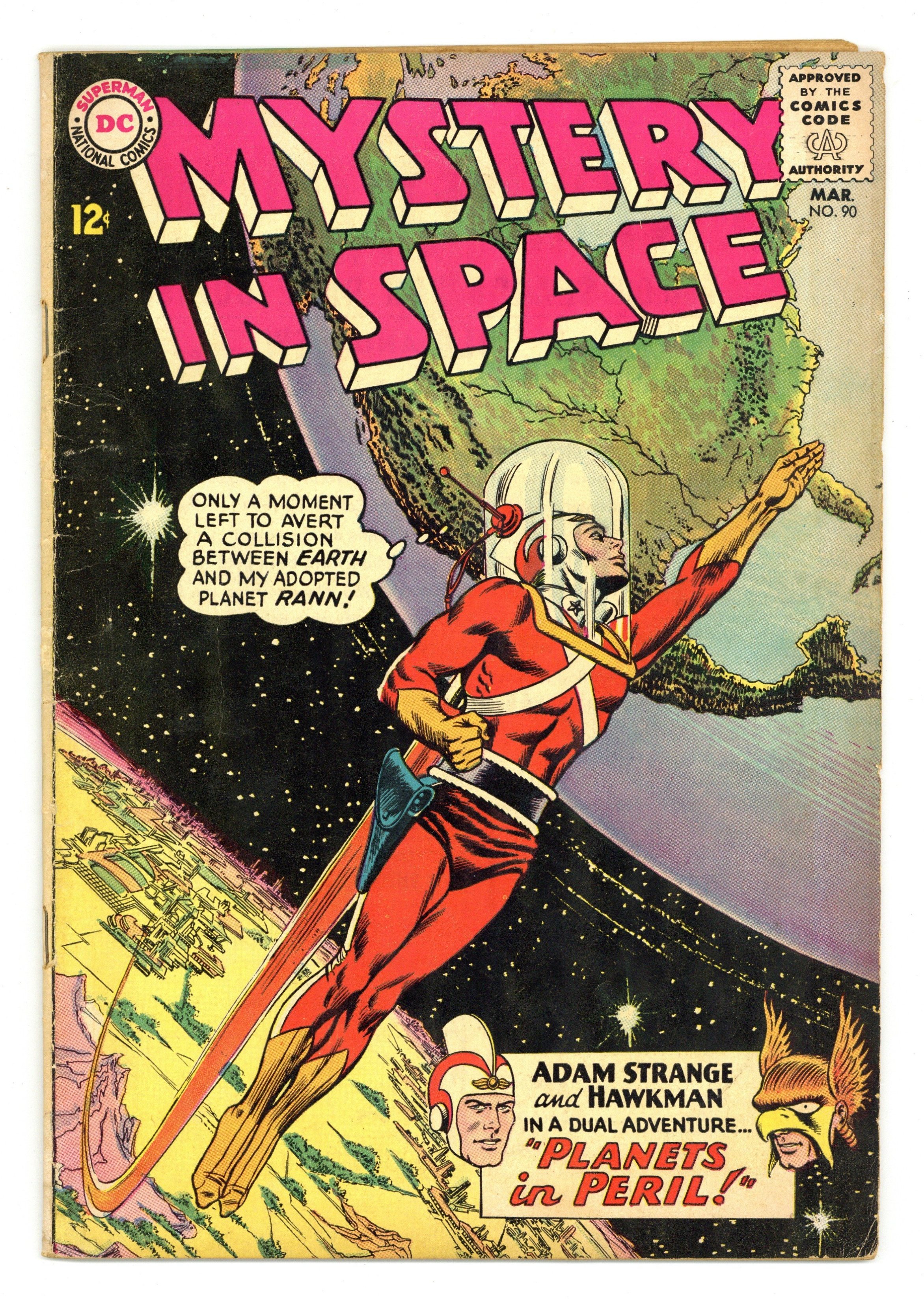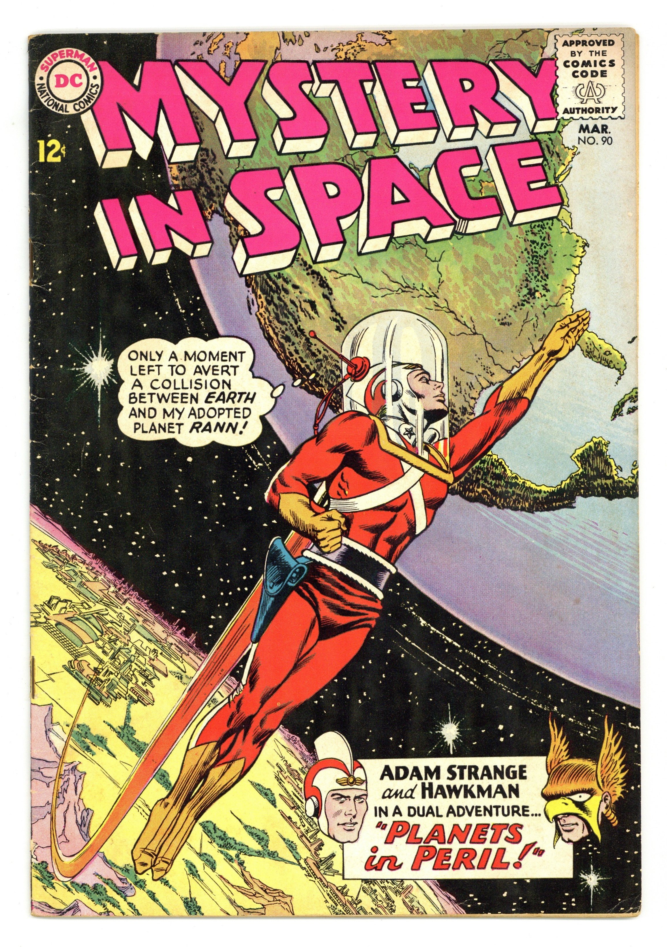 Adam Strange and Hawkman team up for the first time in "Planets in Peril!" (pencils by Carmine Infantino, inks by Murphy Anderson). Hawkman moved to his own title the next month. Letter to the editor from Funky Winkerbean creator Tom Batiuk. Infantino/Anderson cover. 36 Pages, Full Color. Cover price $0.12.