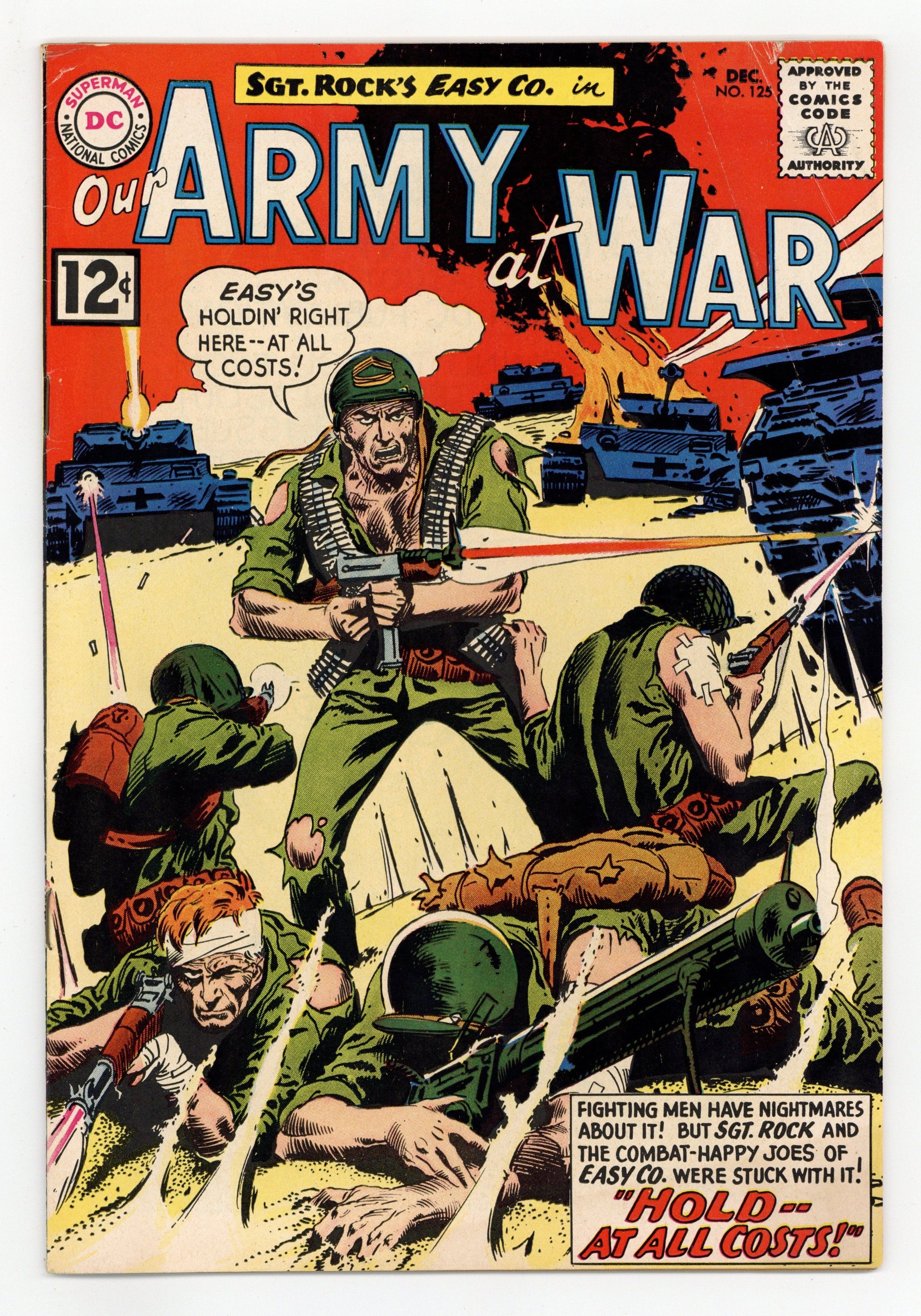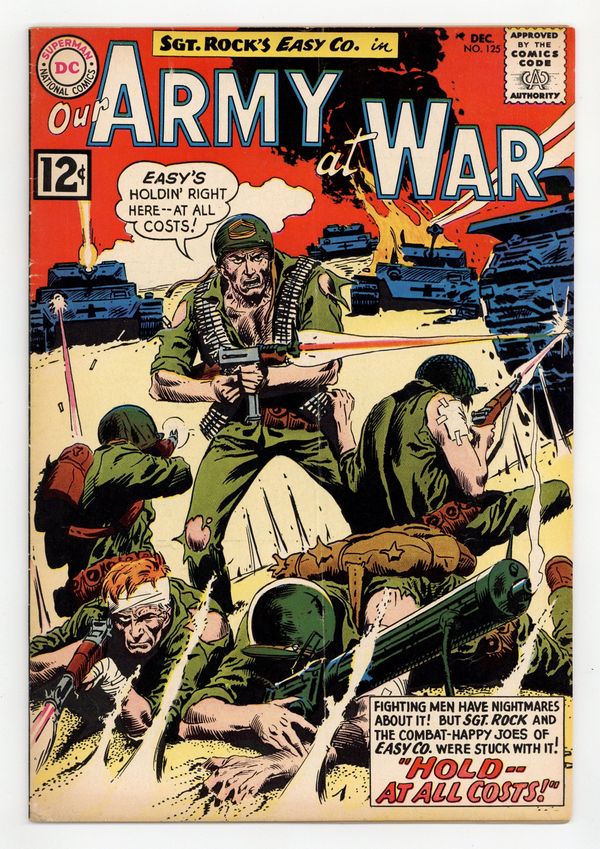 Cover art by Joe Kubert. Hold--At All Costs starring Sgt. Rock, script by Bob Kanigher, art by Russ Heath. Wings of Shame, script by Hank Chapman, art by Jack Abel. The Bug That Won An Island, script by Bob Haney, pencils by Ross Andru, inks by Mike Esposito. 36 Pages, Full Color. Cover price $0.12.
