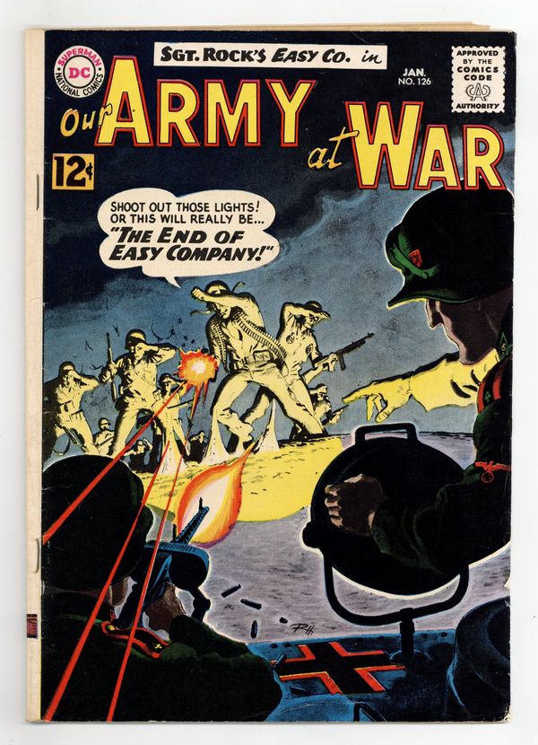 $36.00Cover art by Russ Heath. The End of Easy Co. starring Sgt. Rock, script by Bob Kanigher, art by Joe Kubert. The Fort That Wouldn't Stay Up, script by Hank Chapman, art by Irv Novick. 36 Pages, Full Color. Cover price $0.12.