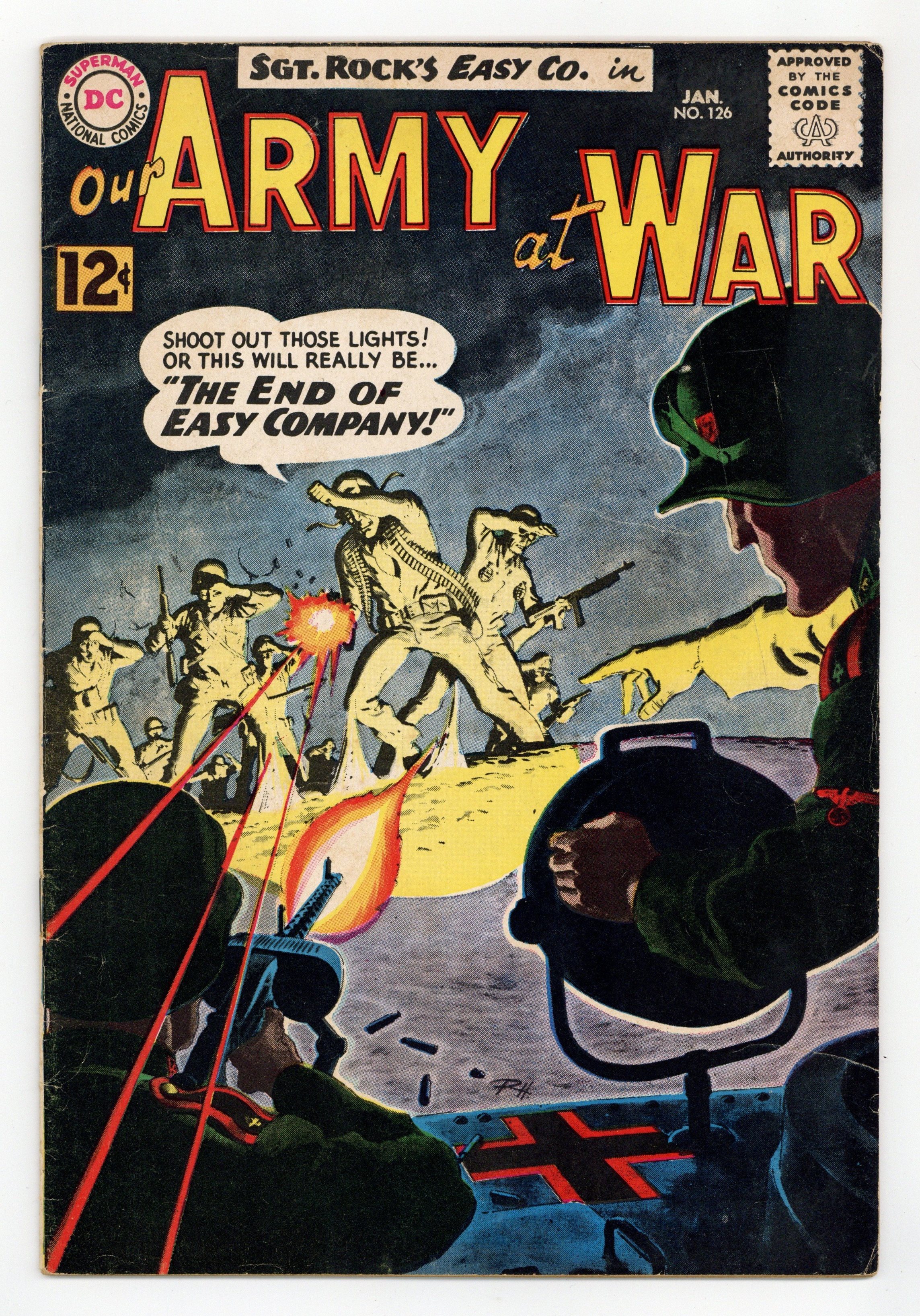 Cover art by Russ Heath. The End of Easy Co. starring Sgt. Rock, script by Bob Kanigher, art by Joe Kubert. The Fort That Wouldn't Stay Up, script by Hank Chapman, art by Irv Novick. 36 Pages, Full Color. Cover price $0.12.