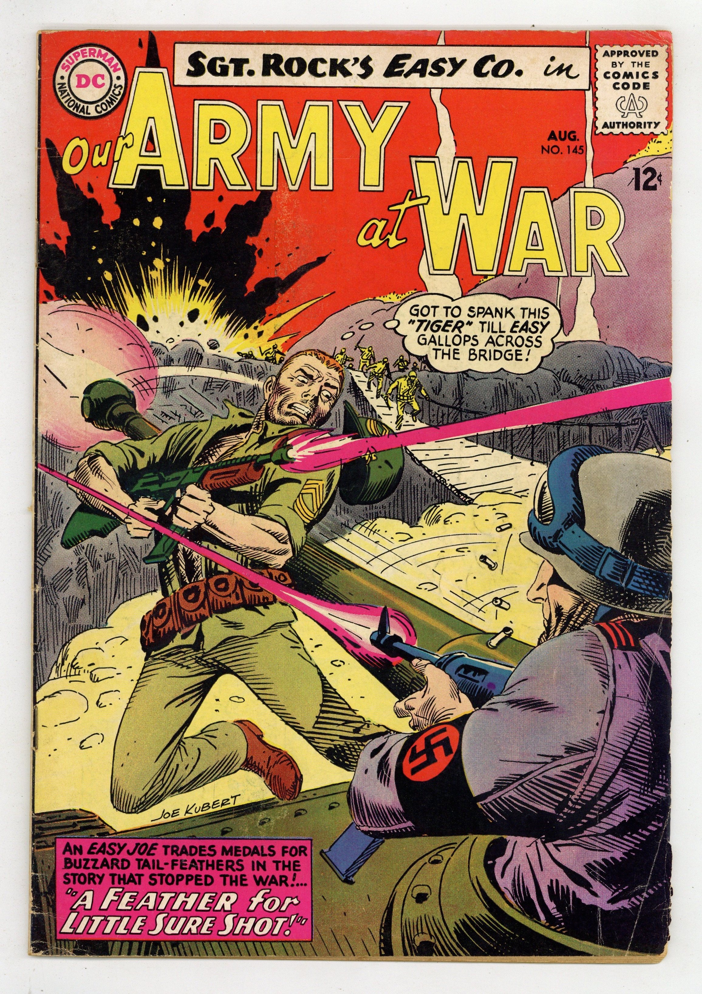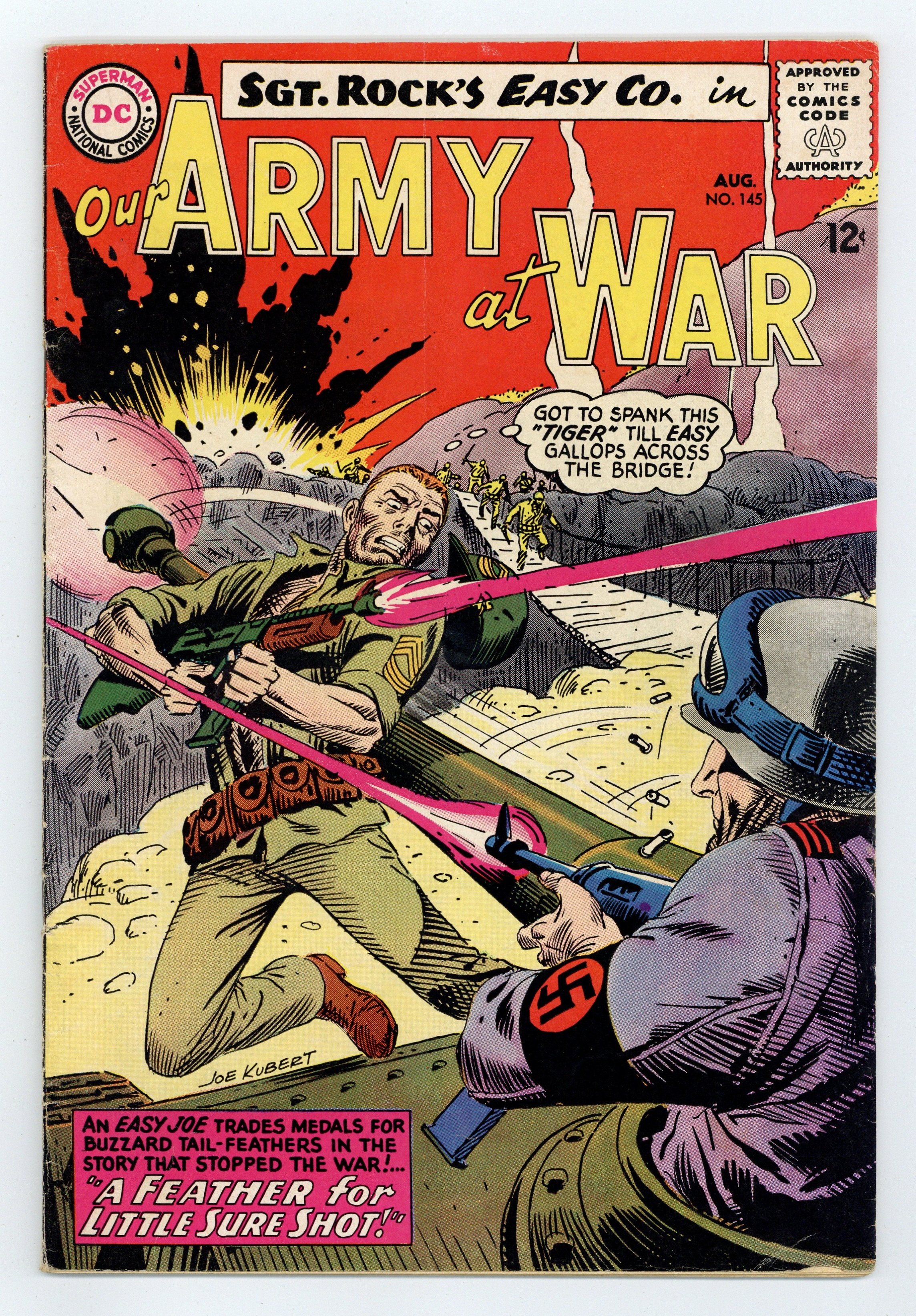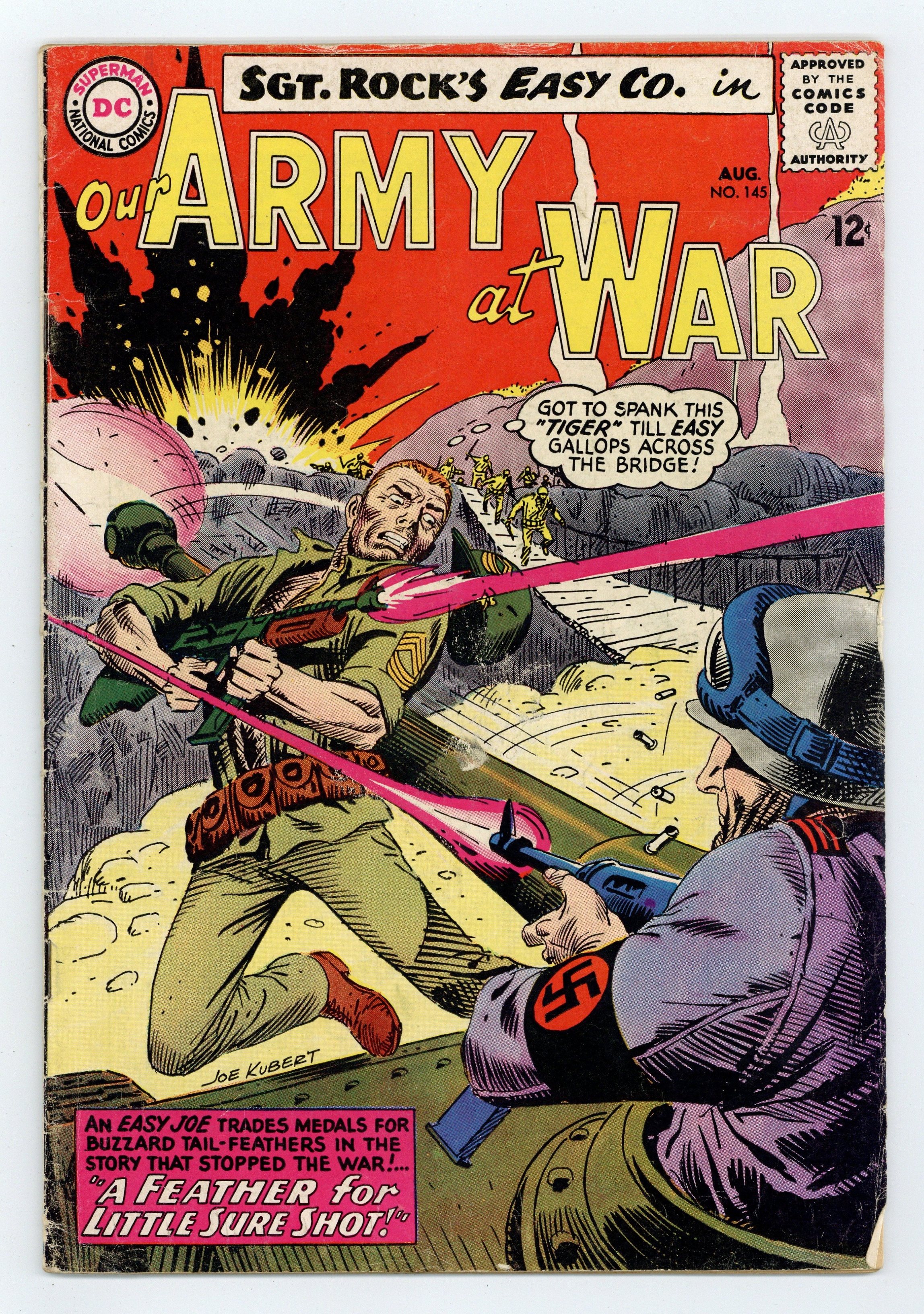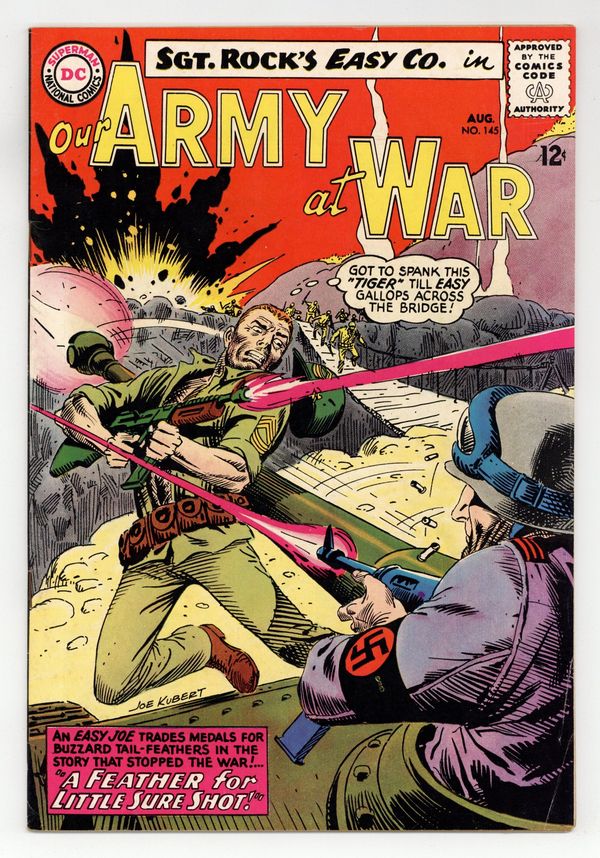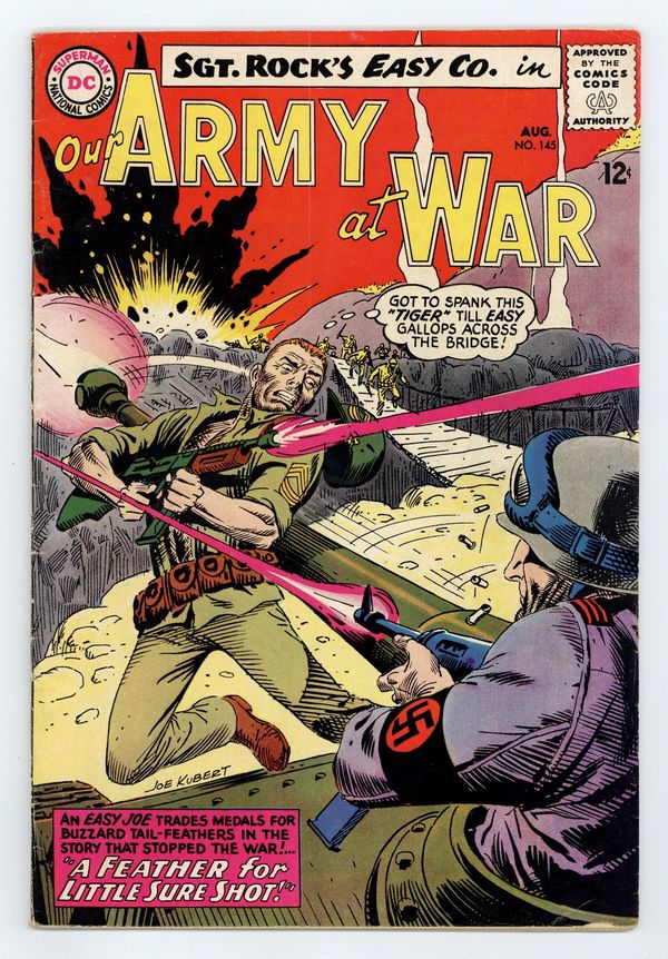 Cover art by Joe Kubert. A Feather For Little Sure Shot starring Sgt. Rock, script by Bob Kanigher, art by Joe Kubert. Easy Joe trades medals for buzzard tail feathers. Wear It --When You Earn It, script by Hank Chapman, art by Jack Abel. 36 Pages, Full Color. Cover price $0.12.