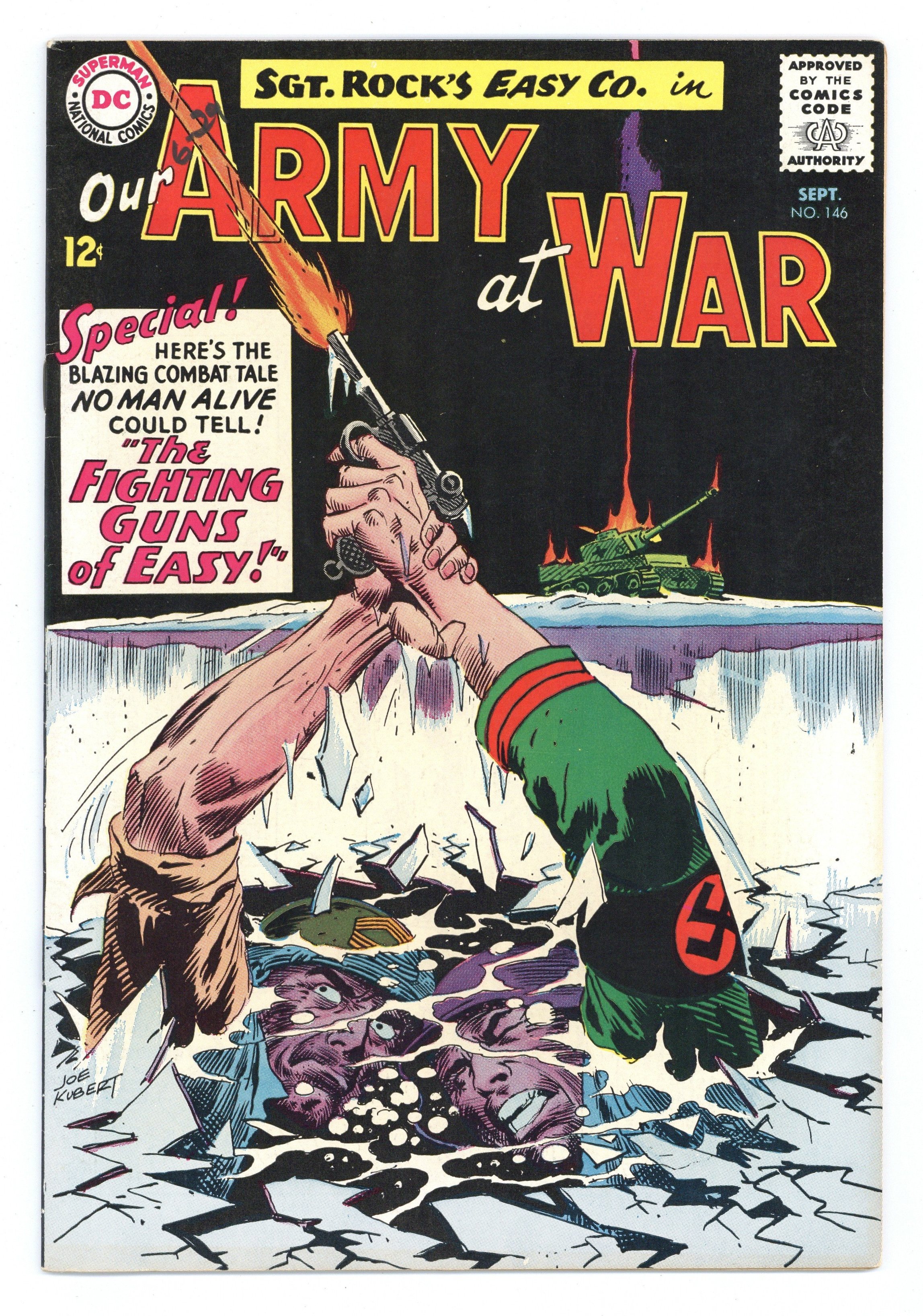 Cover art by Joe Kubert. The Fighting Guns of Easy starring Sgt Rock, script by Bob Kanigher, art by Joe Kubert. No Score For A Frogman, script by Hank Chapman, art by Jack Abel. 36 Pages, Full Color. Cover price $0.12.