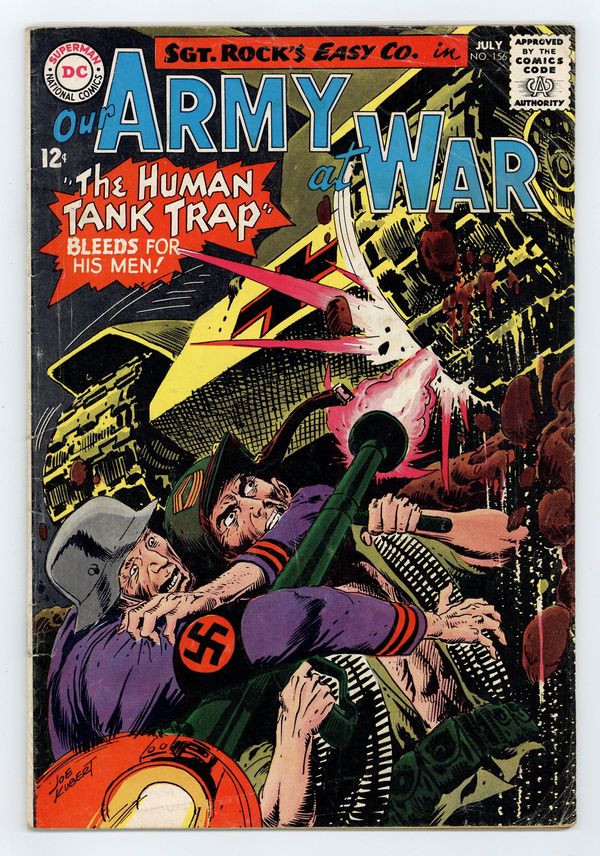$16.00Cover art by Joe Kubert. The Human Tank Trap starring Sgt Rock, script by Bob Kanigher, art by Joe Kubert. Penny In The Slot, script by Bob Kanigher, art by Jack Abel. 36 Pages, Full Color. Cover price $0.12.