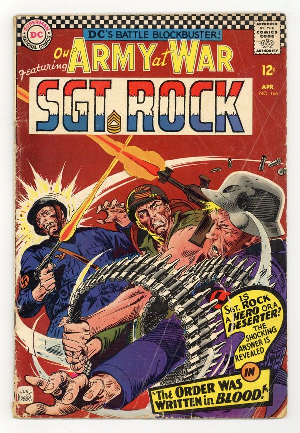 Cover art by Joe Kubert. Half a Sergeant starring Sgt. Rock, script by Bob Kanigher, art by Joe Kubert. Is Sgt. Rock a hero or a deserter? The Joker Is Death, script by Howard Liss, art by Jack Abel. 36 Pages, Full Color. Cover price $0.12.