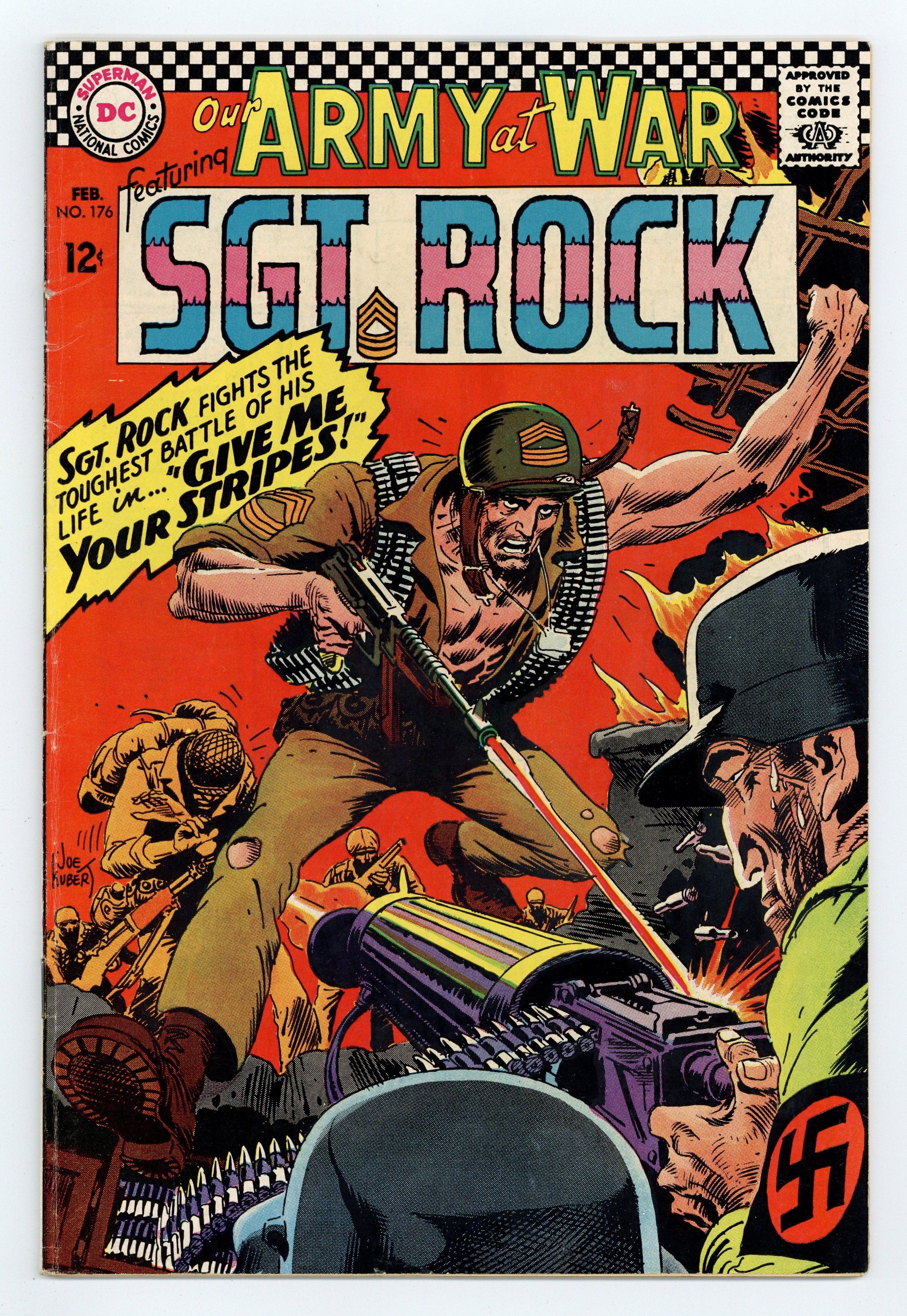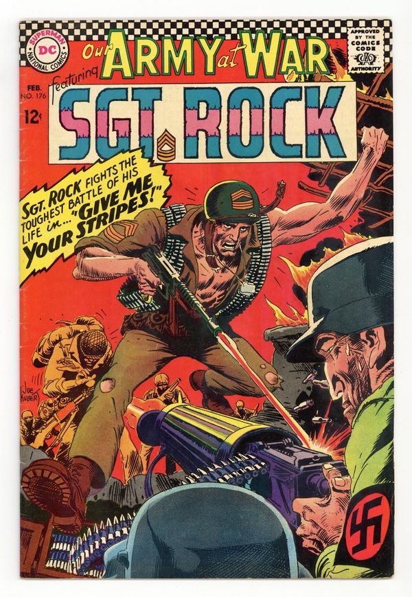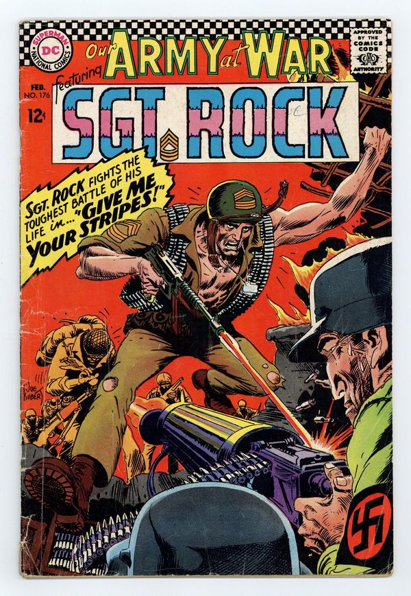 Cover art by Joe Kubert. Give Me Your Stripes starring Sgt Rock, script by Bob Kanigher, art by Joe Kubert. We Two Are One, script by Howard Liss, art by John Calnan. Private Pete humor page by Henry Boltinoff. G.I. Joe Club with Andy & George ad. 36 Pages, Full Color. Cover price $0.12.