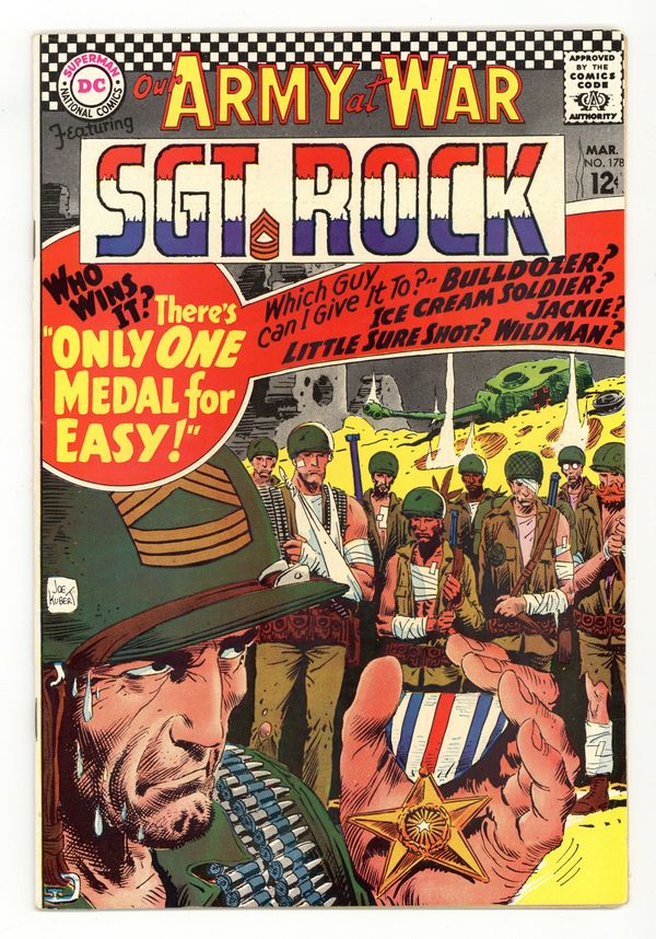 Cover art by Joe Kubert. Only 1 Medal for Easy starring Sgt Rock, script by Bob Kanigher, art by Russ Heath. My Cockpit is a Cradle, script by Hank Chapman, art by Jack Abel. Cap's Hobby Hints by Henry Boltinoff. 36 Pages, Full Color. Cover price $0.12.
