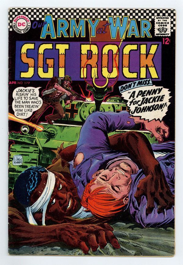 $22.00Cover art by Joe Kubert. A Penny For Jackie Johnson! starring Sgt. Rock, script by Robert Kanigher, art by Joe Kubert. The Golden Rule public service announcement starring Bob Hope, script by Jack Schiff, art by Bob Oksner. Charlie's Castle, script by Howard Liss, art by Jack Abel. 36 Pages, Full Color. Cover price $0.12.