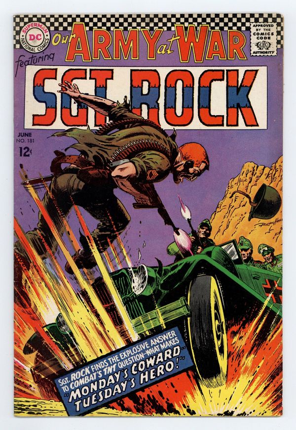 $22.00Cover art by Russ Heath. Monday's Coward -- Tuesday's Hero starring Sgt Rock, script by Bob Kanigher, art by Russ Heath. Paper Bullets, script by Hank Chapman, art by Jack Abel. 36 Pages, Full Color. Cover price $0.12.