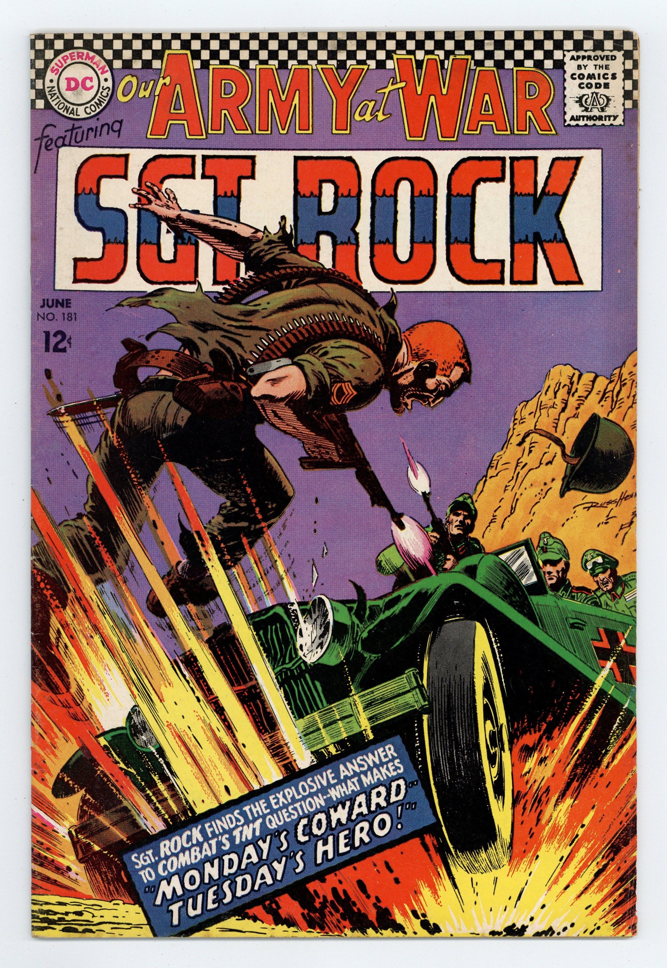 Cover art by Russ Heath. Monday's Coward -- Tuesday's Hero starring Sgt Rock, script by Bob Kanigher, art by Russ Heath. Paper Bullets, script by Hank Chapman, art by Jack Abel. 36 Pages, Full Color. Cover price $0.12.