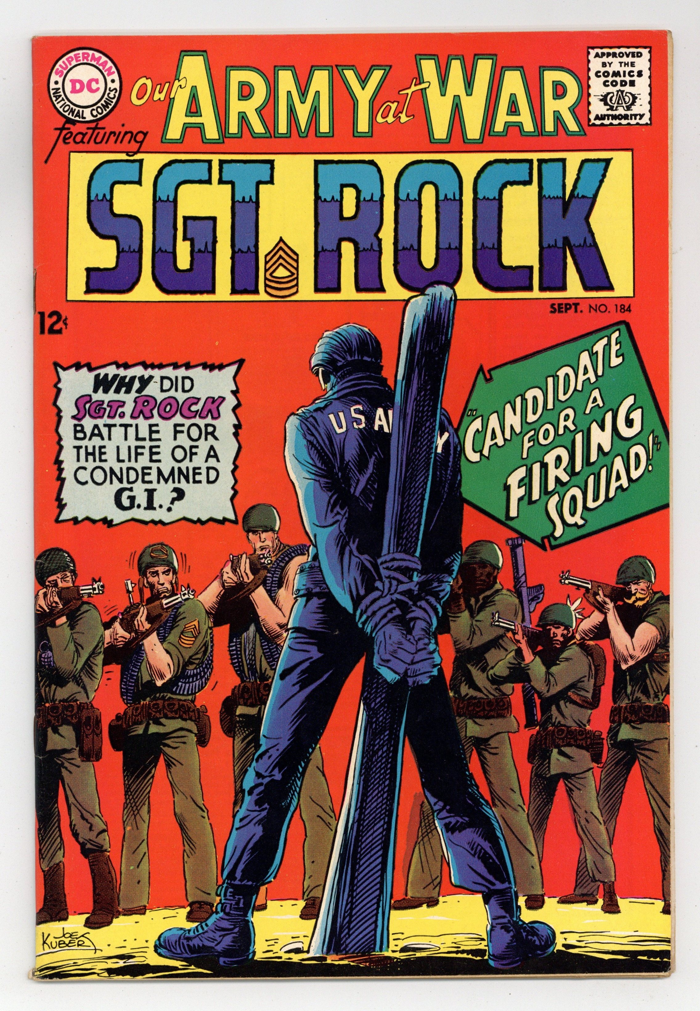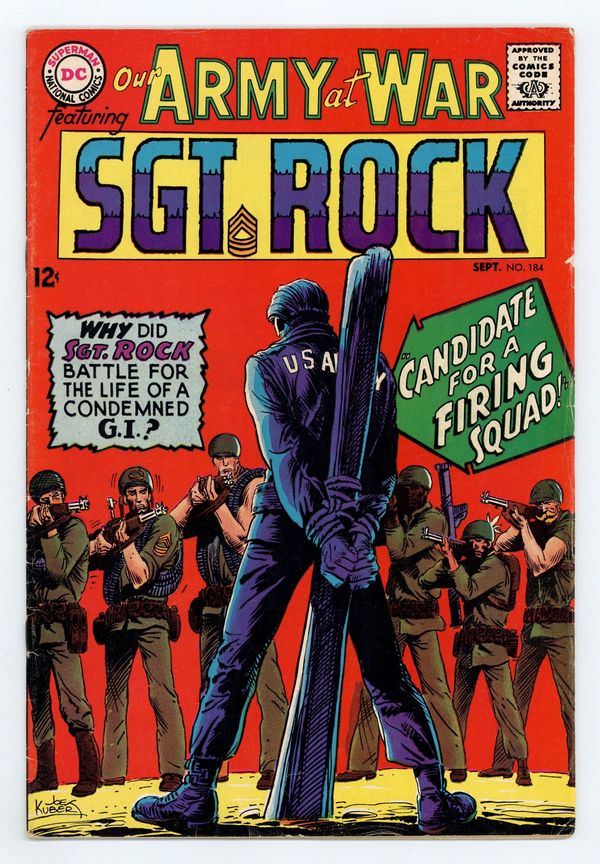 $22.50Cover art by Joe Kubert. Candidate For A Firing Squad starring Sgt. Rock, script by Bob Kanigher, art by Joe Kubert. Invasion Beach Taxi, script by Bob Haney, art by Russ Heath. Major Matt Mason' Mattel's Man in Space toy ad. Letter column art by Kubert. Cap's Hobby Hints by Henry Boltinoff. 36 Pages, Full Color. Cover price $0.12.