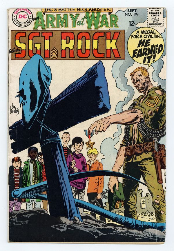 Cover art by Joe Kubert. Last Exit For Easy starring Sgt. Rock and the team of the Kid Guerillas of Unit 3, script by Bob Kanigher, art by Russ Heath. No Foxhole for Baby, script by Howard Liss, art by Jack Abel. 36 Pages, Full Color. Cover price $0.12.