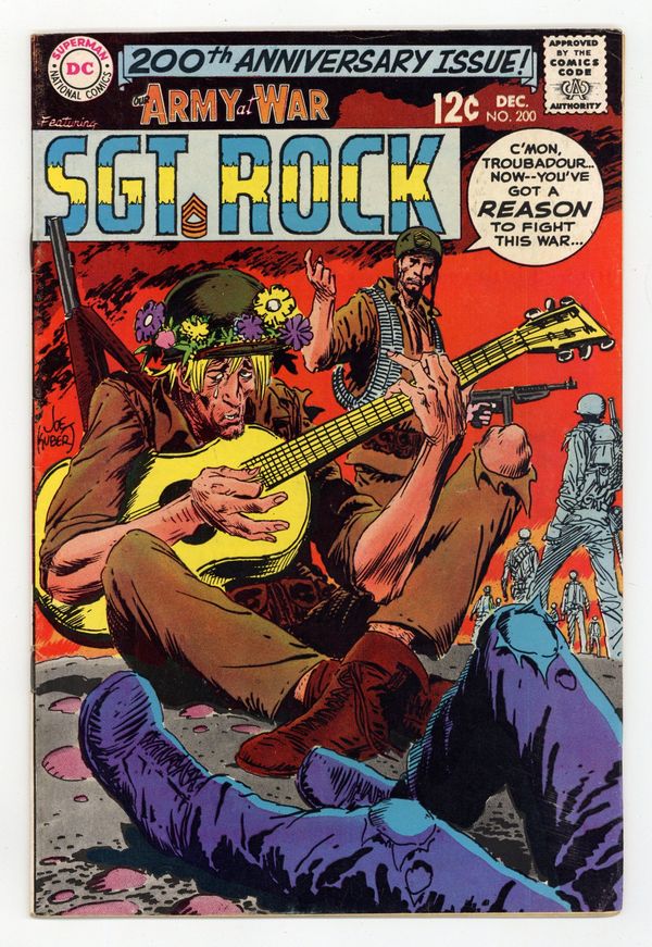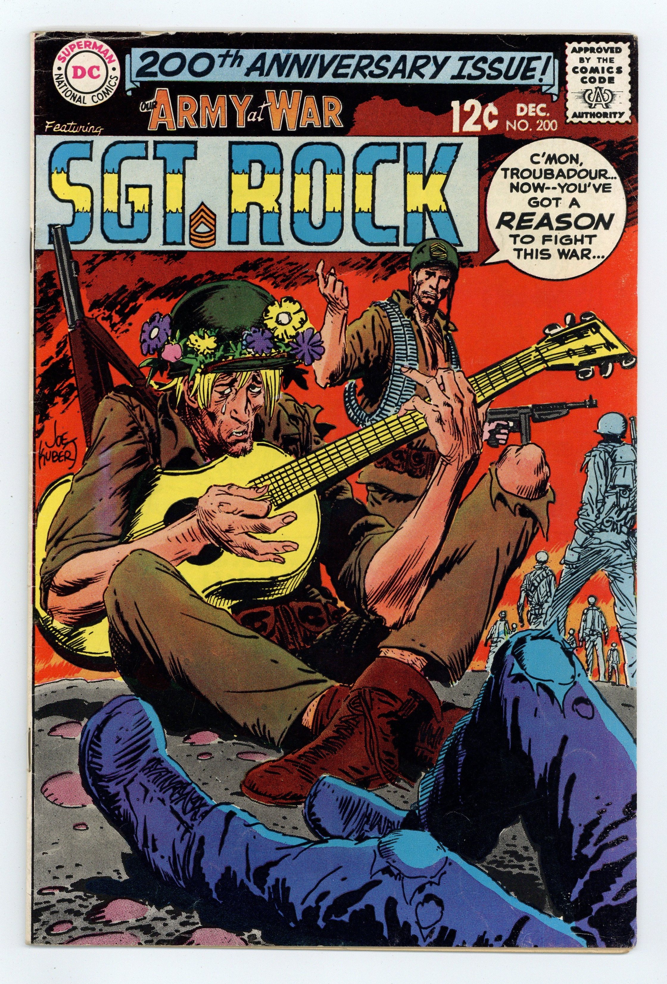 $18.75Cover art by Joe Kubert. The Troubadour starring Sgt. Rock, script by Bob Kanigher, art by Joe Kubert. Special Battle Pin-up! of Sgt. Rock, art by Joe Kubert. Letter column art by Kubert. G.I. Bulletin Board humor page. Library of Information on Machines battle album, art byu Kubert. The Ace and the Joker, script by Bob Haney, art by George Evans. 36 Pages, Full Color. Cover price $0.12.