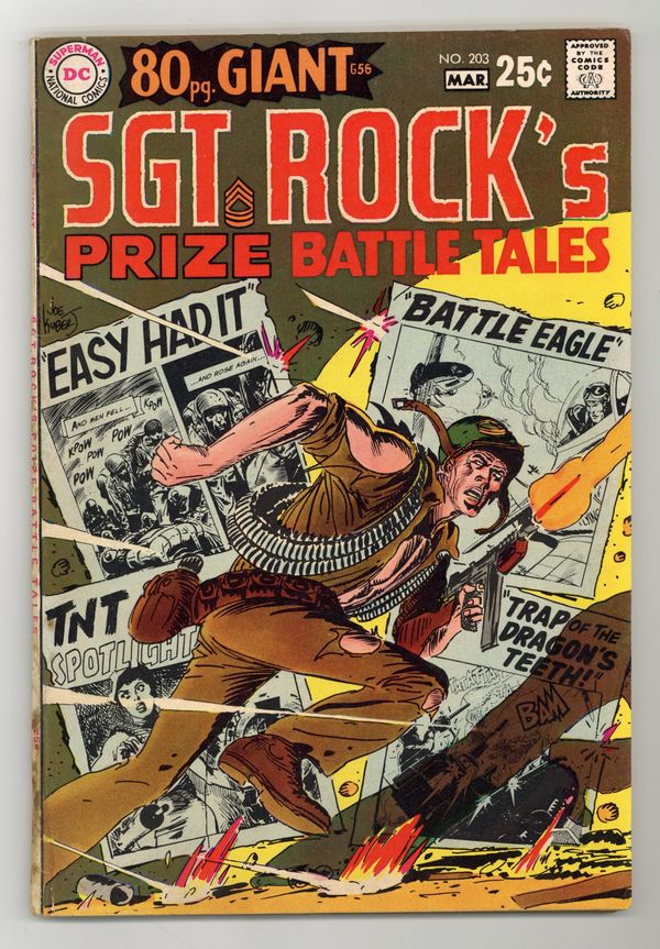 Cover art by Joe Kubert. Easy's Had It starring Sgt Rock, script by Bob Kanigher, art by Joe Kubert. Trap of the Dragon's Teeth starring Haunted Tank, script by Bob Kanigher, art by Russ Heath. TNT Spotlight starring Mlle. Marie, script by Bob Kanigher, art by Mort Drucker. Battle Eagle starring Johnny Cloud, script by Bob Kanigher, art by Irv Novick. Col. Hakawa's Birthday Party starring Gunner and Sarge, script by Bob Kanigher, art by Irv Novick. 84 Pages, Full Color. Cover price $0.25.