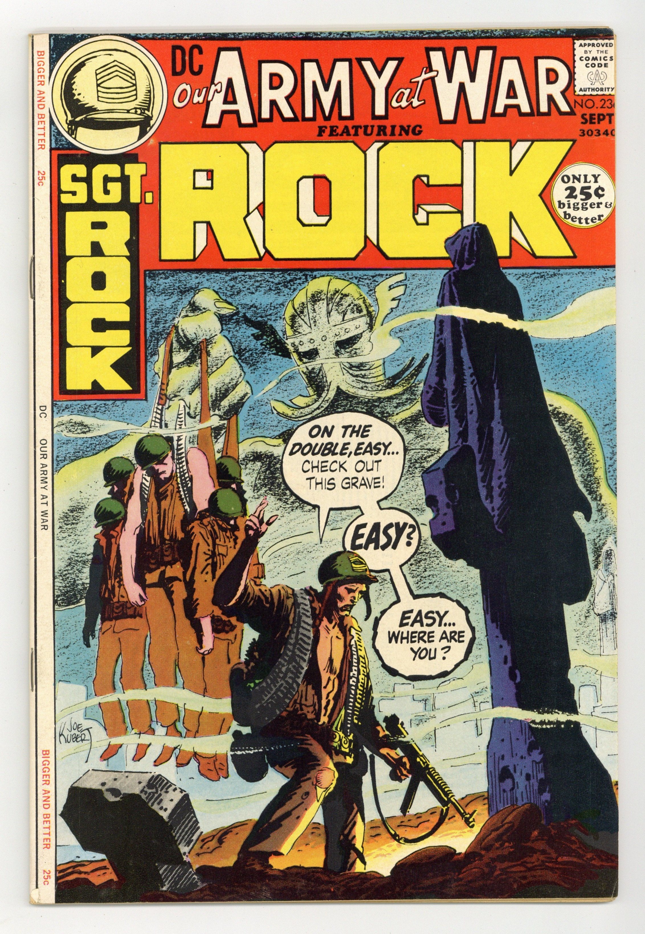 $20.50Cover art by Joe Kubert. Face The Devil! starring Sgt Rock, script by Bob Kanigher, art by Russ Heath. 22 Hours to San Francisco, script by Mike Friedrich, art by John Severin. The Empty Cockpit!, art by Joe Kubert. The Wild, Blue Yonder! starring Captain D. Ring, script and art by John Costanza. The Third Enemy, script by Bob Haney, art by Russ Heath. No Beginning--No End!, script by Bob Kanigher, art by Frank Thorne. 52 Pages, Full Color. Cover price $0.25.