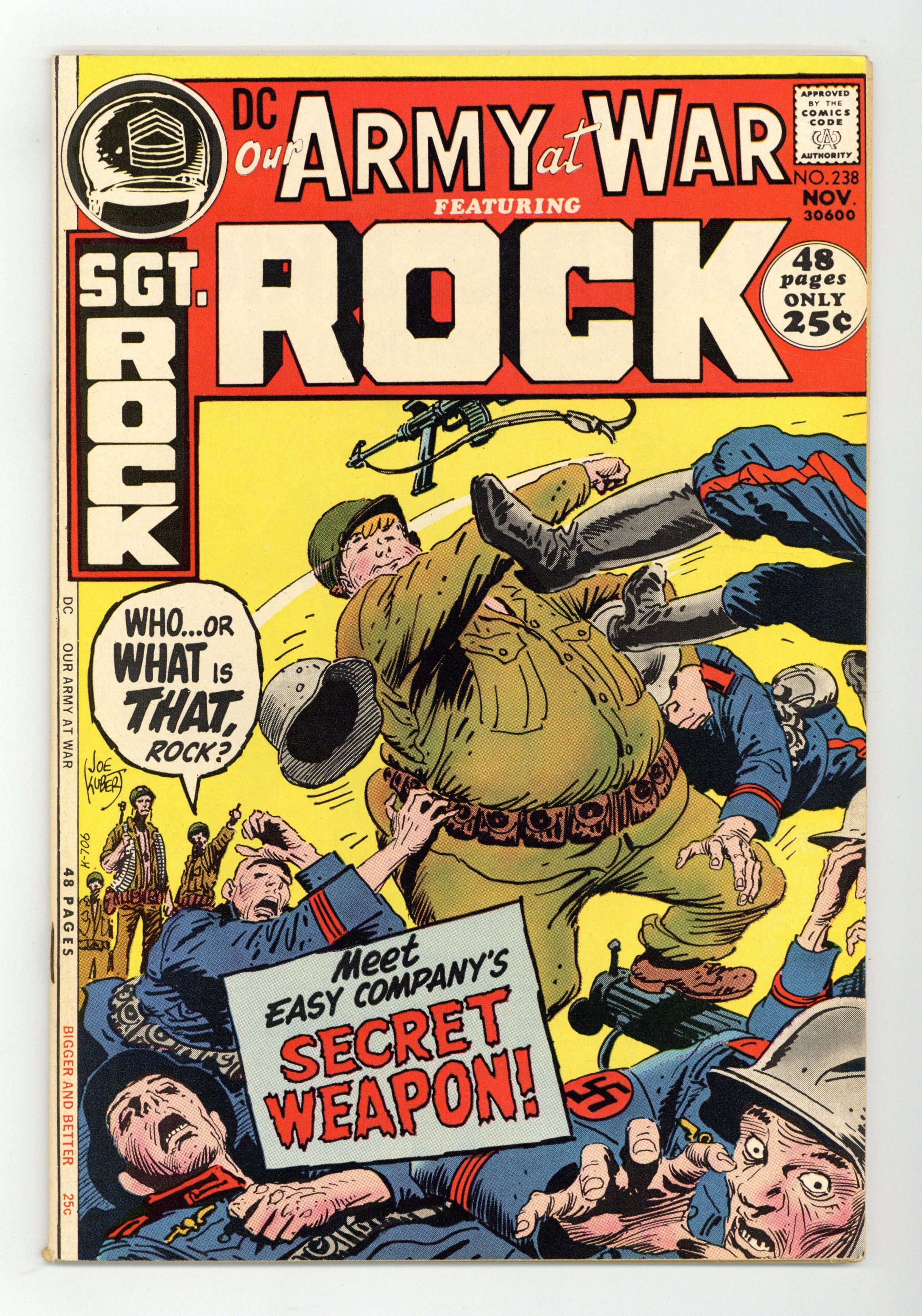 Cover art by Joe Kubert. I Kid You Not starring Sgt. Rock, script by Bob Kanigher, art by Joe Kubert. X DD479 featuring U.S.S. Stevens, script and art by Sam Glanzman. D.C. Sweeps A.C.B.A. Awards, pencils by Neal Adams, featuring Denny O'Neil, Neal Adams, Dick Giordano, Bob Oksner, Henry Scarpelli, and Jack Adler. Big War...Little War, script by Bob Kanigher, pencils by Ross Andru, inks by Mike Esposito. The Battle of the Sunken Village starring Mlle. Marie, script by Bob Haney, art by Irv Novick. 52 Pages, Full Color. Cover price $0.25.
