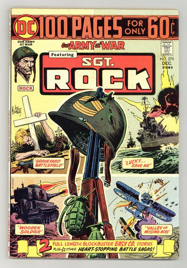 $18.50Cover art by Joe Kubert. Graveyard Battlefield starring Sgt. Rock, script by Bob Kanigher, art by Russ Heath. Lucky...Save Me featuring USS Stevens, script and art by Sam Glanzman. Sergeants Aren't Born starring Sgt. Rock, script by Bob Kanigher, art by Joe Kubert. Man Behind the Flintlock, script by Ed (France) Herron, pencils by Ross Andru, inks by Mike Esposito. Trench Trap, script by Bob Kanigher, art by Russ Heath. The Easy Way, script by Bob Haney, art by Mort Drucker. Valley of Missing Aces, script by Bob Haney, pencils by Ross Andru, inks by Mike Esposito. 100 Pages, Full Color. Cover price $0.60.
