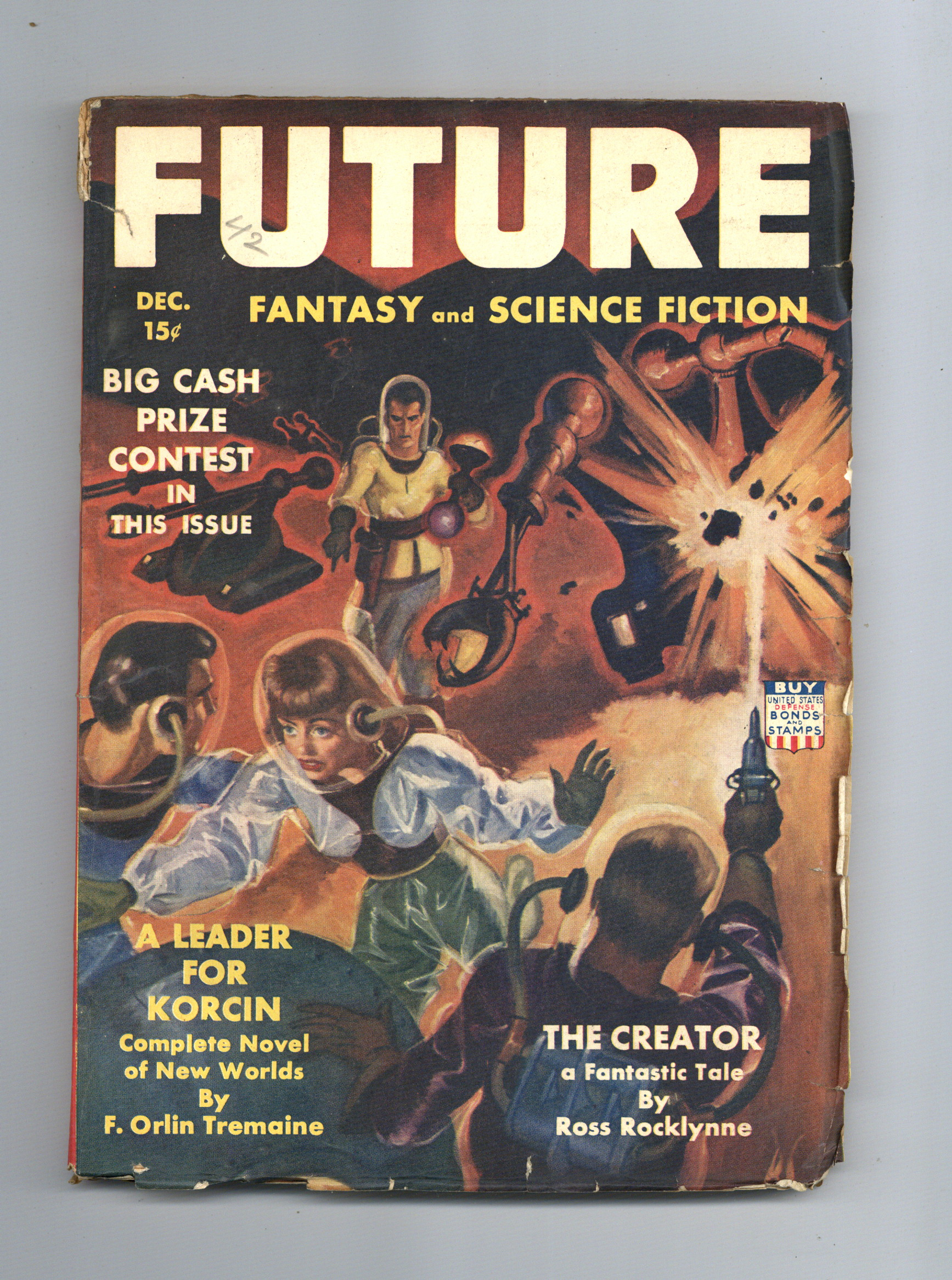 December, 1942. Complete Novel: "A Leader for Korcin" by F. Orlin Tremaine. Noveletes: "The Key to the Dark Planet" by Martin Pearson, and "The Leapers" by Carol Grey. Short Stories: "Claggett's Folly" by Hugh Raymond, "The Creator" by Ross Rocklynne, "The Cannibals" by Oliver Saari, "Fanatics of Mercury" by Henry Andrew Ackermann, and "The Oomph Beasts" by Millard Verne Gordon. 114 pages, B&W, 6.75" x 9.5". Cover price $0.15.