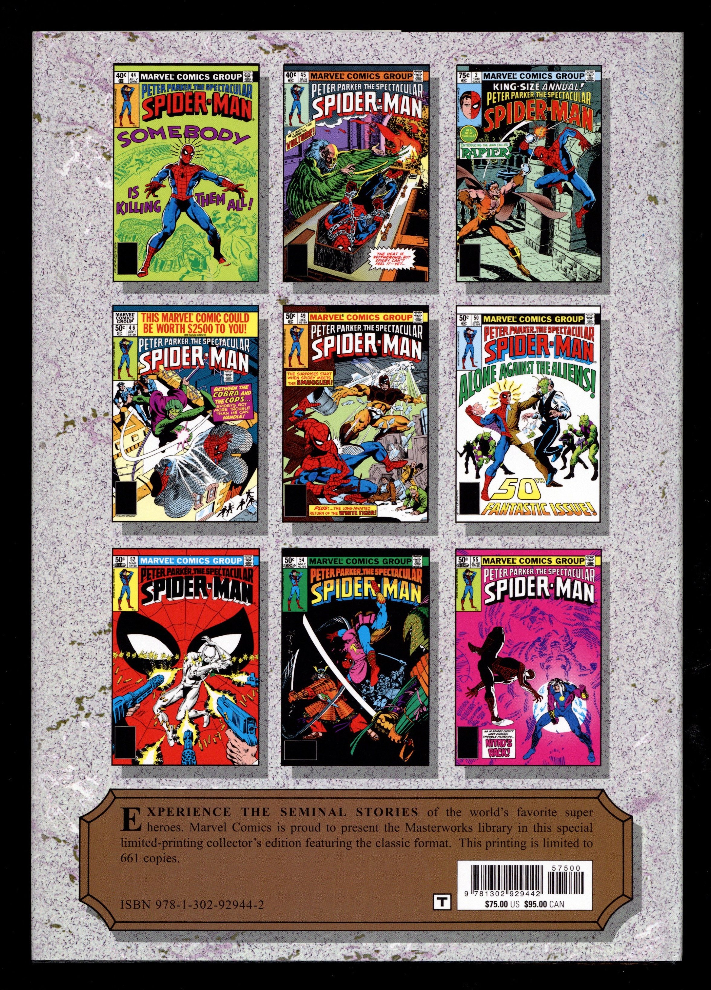 Volume 312 - 1st printing. "The Spectacular Spider-Man: Book 4!" Collects The Spectacular Spider-Man (1976-1998 1st Series) #43-55 and ANNUAL #2.