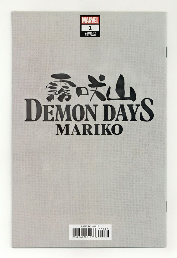Tags: The Yashida Saga (part 1)$15.00Limited 1 for 100 Retailer Incentive Variant Cover. The Yashida Saga: Part 1 - Written and Art by Peach Momoko. Cover by Jen Bartel. IN THE SHADOW OF KIRISAKI MOUNTAIN… A SECRET HISTORY COMES TO LIGHT! The DEMON DAYS saga by STORMBREAKER PEACH MOMOKO continues! Mariko Yashida hears mysterious voices and has strange dreams that feel real. Her redheaded maid who dresses all in black might know more than she lets on. What is the connection between Mariko, the creatures called Oni and Kirisaki Mountain? Find out in the next installment of this tale of magic, monsters and Marvel characters like you've never seen them before, beautifully rendered by Peach Momoko! Book TWO of FIVE of the DEMON DAYS saga! 36 pages, full color. Rated T+ Cover price $4.99.