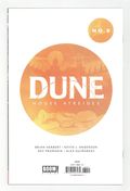 Published Jun 2021 by Boom Studios.$23.00Limited 1 for 50 Retailer Incentive Variant Cover. Written by Brian Herbert, Kevin J. Anderson. Art by Dev Pramanik and Mariano Taibo. Cover by Jeff Dekal. Duncan Idaho has a bad feeling about the upcoming celebration at Castle Atreides, but will anyone listen to the young boy? And how is it connected to Leto Atreides meeting his destiny? Meanwhile, Baron Harkonnen will have to contend with his own destiny and the consequences of his retaliation against Reverend Mother Mohiam. 24 pages, full color. Cover price $4.99.