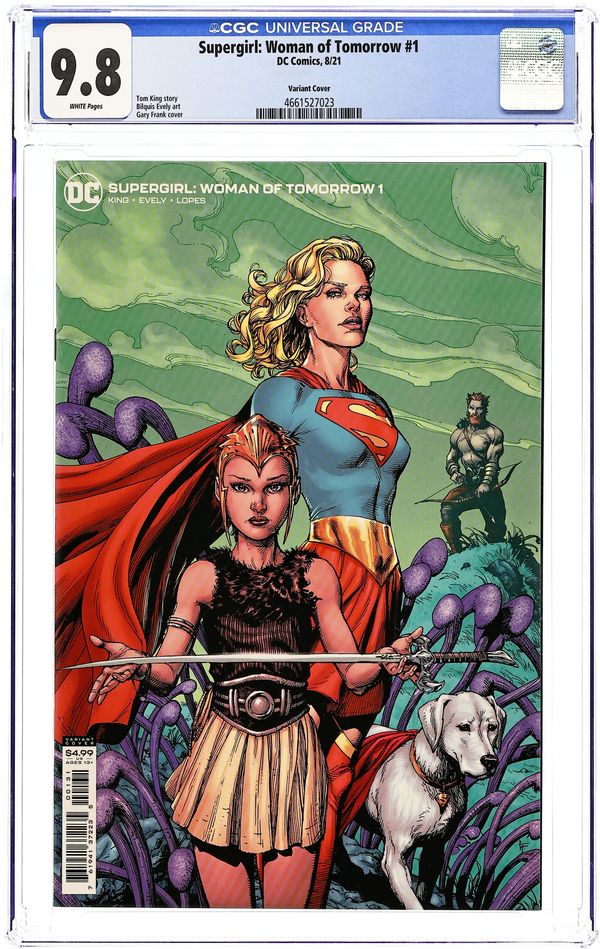 Written by Tom King. Art by Bilquis Evely. Cover by Gary Frank Kara. Zor-El has seen some epic adventures over the years, but finds her life without meaning or purpose. Here she is, a young woman who saw her planet destroyed and was sent to Earth to protect a baby cousin who ended up not needing her. What was it all for? Wherever she goes, people only see her through the lens of Supermans fame. Just when Supergirl thinks shes had enough, everything changes. An alien girl seeks her out for a vicious mission. Her world has been destroyed, and the bad guys responsible are still out there. She wants revenge, and if Supergirl doesnt help her, shell do it herself, whatever the cost. Now a Kryptonian, a dog, and an angry, heartbroken child head out into space on a journey that will shake them to their very core. 32 pages, full color. Rated T+ Cover price $4.99.