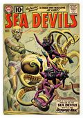 Cover by Russ Heath. "The Sea Devils vs. the Octopus Man!", script by Robert Kanigher, art by Russ Heath; Producer Wendel Wales is shooting a movie about the Sea Devils; His mechanical Octopus Man is destroyed when the real version appears and attacks the movie set. "Secret of the Emerald Whale!", script by Bob Haney, art by Russ Heath; The Sea Devils find an iceberg with the Emerald Whale and Captain Shark frozen inside. 36 pgs., full color. $0.10. Cover price $0.10.