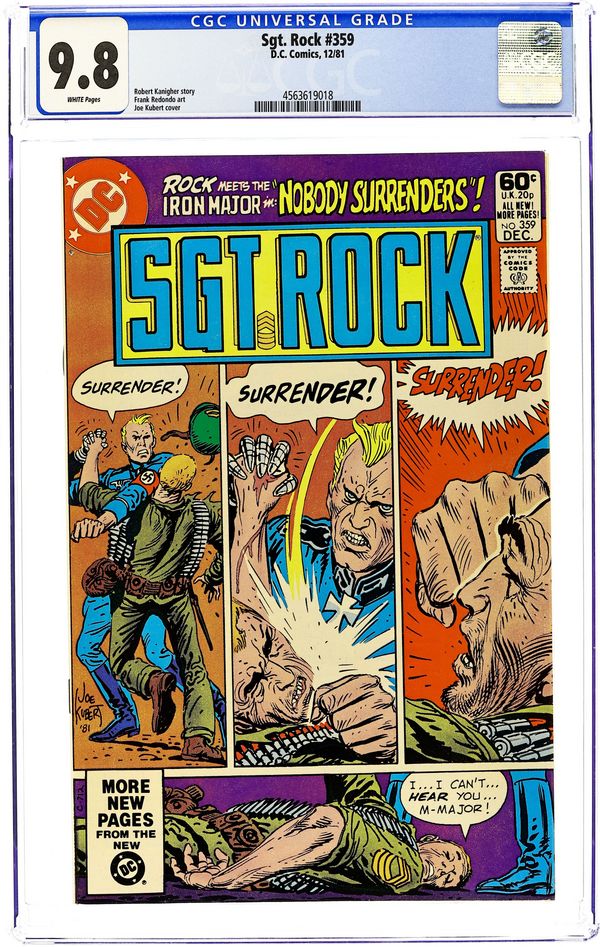 Direct Edition. "Nobody Surrenders!" Written by Bob Kanigher. Art by Frank Redondo. Cover by Joe Kubert. Sgt. Rock meets Iron Major and believe me, he is going to wish he hadn't. Includes the back-up tale "Trade-Off!" Written by Bill Kelley. Art by Ron Randall. And. Men of Easy: Wedding March!" By Bob Kanigher and Tom Mandrake. Plus, "Blind Faith!" By Jan Duursema. 32 pages, FC. Cover price $0.60.