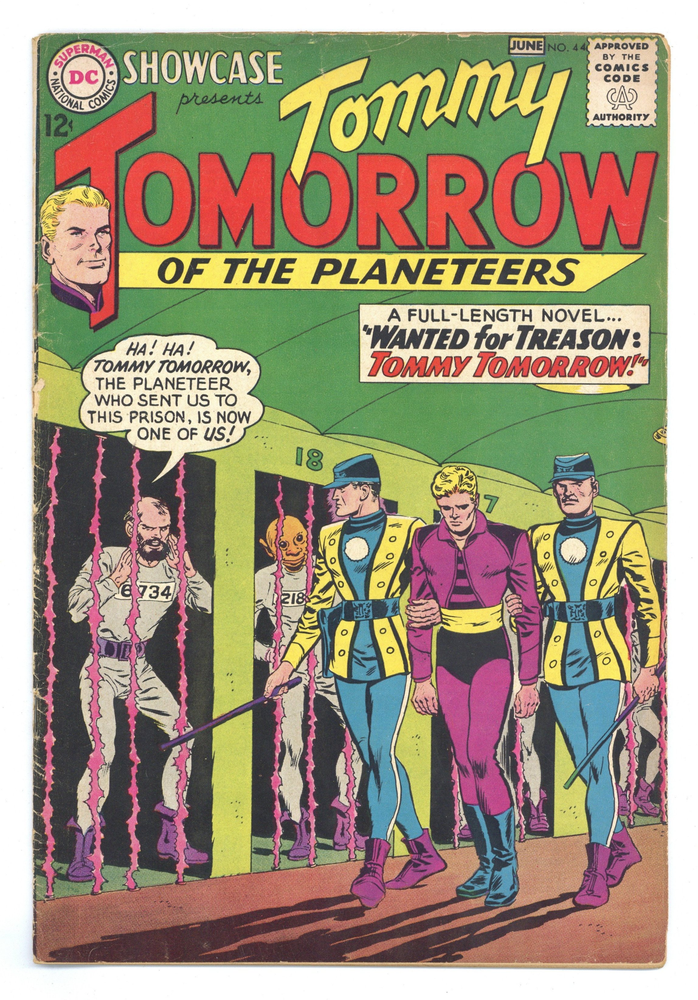 Cover art by Lee Elias. 3rd Tommy Tomorrow issue. Chapter 1: Tommy Tomorrow -- Wanted for Treason, script by Arnold Drake, art by Lee Elias; After gazium raiders use a Planeteer squadron's secret code to lure them away from a gazium theft, all members of that squad, including Capt. Tommy Tomorrow and Capt. Lon Vurian, are placed under investigation. On the Planet Og humor page by Henry Boltinoff. Ad for Metal Men #1. Chapter 2: The Fantastic Dr. Klik, script by Arnold Drake, art by Lee Elias; Using the stolen gazium, Dr. Klik succeeds in greatly expanding the size of a single atom; This strange atom is inhabited by fantastic creatures which, when expanded to scale, will be indestructible. Eye in the Sky article. Chapter 3: The Man Who Would Destroy Mars, script by Arnold Drake, art by Lee Elias; With Vurian's help, Tomorrow escapes capture and returns to Klik's hideout. Statement of ownership: Statement of October 1, 1962; Average number of copies sold during preceding 12 months; 220,000. 36 Pages, Full Color. Cover price $0.12.