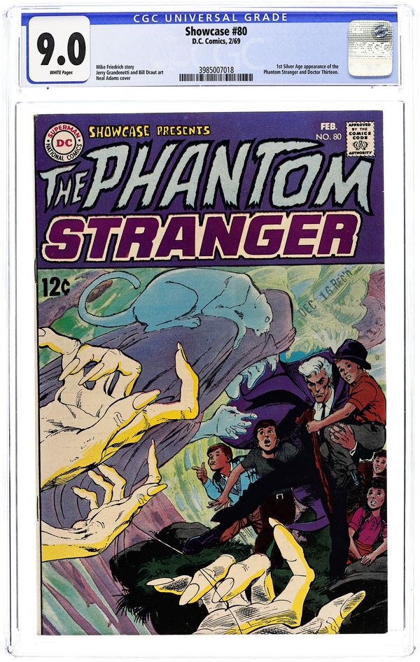 Cover by Neal Adams. 1st Silver Age appearance of the Phantom Stranger in "Men Call Me the Phantom Stranger," script by Mike Friedrich, pencils by Jerry Grandenetti, inks by Bill Draut; Children huddle around a candle in a cave, talking about a "curse" that is about to hit the city; The Phantom Stranger appears, and hopes to puts the children at ease with a story. "The Three Signs of Evil...", script by John Broome, pencils by Carmine Infantino; In Columbus Circle in New York City, a group of sorcerers gather to make use of the full moonlight, using symbols on a board; Artist Mark Davis comes passing by, and unknowingly sketches out the symbols as his newest work of art; When the Stranger takes a look at Davis painting, he realizes that the symbols represent Columbus Circle, Times Square, and Washington Square. "I Talked with the Dead!", pencils by Leonard Starr, inks by Leonard Starr and Wayne Howard (traced & re-inked original); Before his fathers death, Dr. Thirteen made a deal that they would meet up five years after his death; If ghosts were real, then this would prove it. 36 Pages, Full Color. Cover price $0.12.
