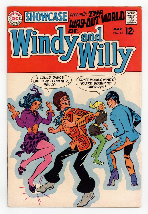 Cover pencils by Bob Oksner. "The Haunted Hippie!", script by Arnold Drake, art by Bob Oksner; Windy Wiggs and Willy Newton find themselves in Eerie, Pennsylvania, where Willy is tracking down a pen-pal; Willy is hoping said pen-pal, Hazel Shotland, is a beauty; Willy sees the blonde-haired beauty he hoped for, however, Hazel is actually a witch after Willy for spell components; While Willy is blinded by Hazels beauty, Windy discovers something suspicious about Hazel, including dancing brooms and black cats; Hazel has Willy in her spell, but Windy sees her for the hag she is; Hazel transforms Windy into a horse, in revenge for spoiling her plans for Willy. Mark Hanerfeld talks about the Alley Awards, himself, DC's first comic (New Fun Comics in February 1935), photos of the DC staff, and 3D editions of Batman and Superman. 36 Pages, Full Color. Cover price $0.12.