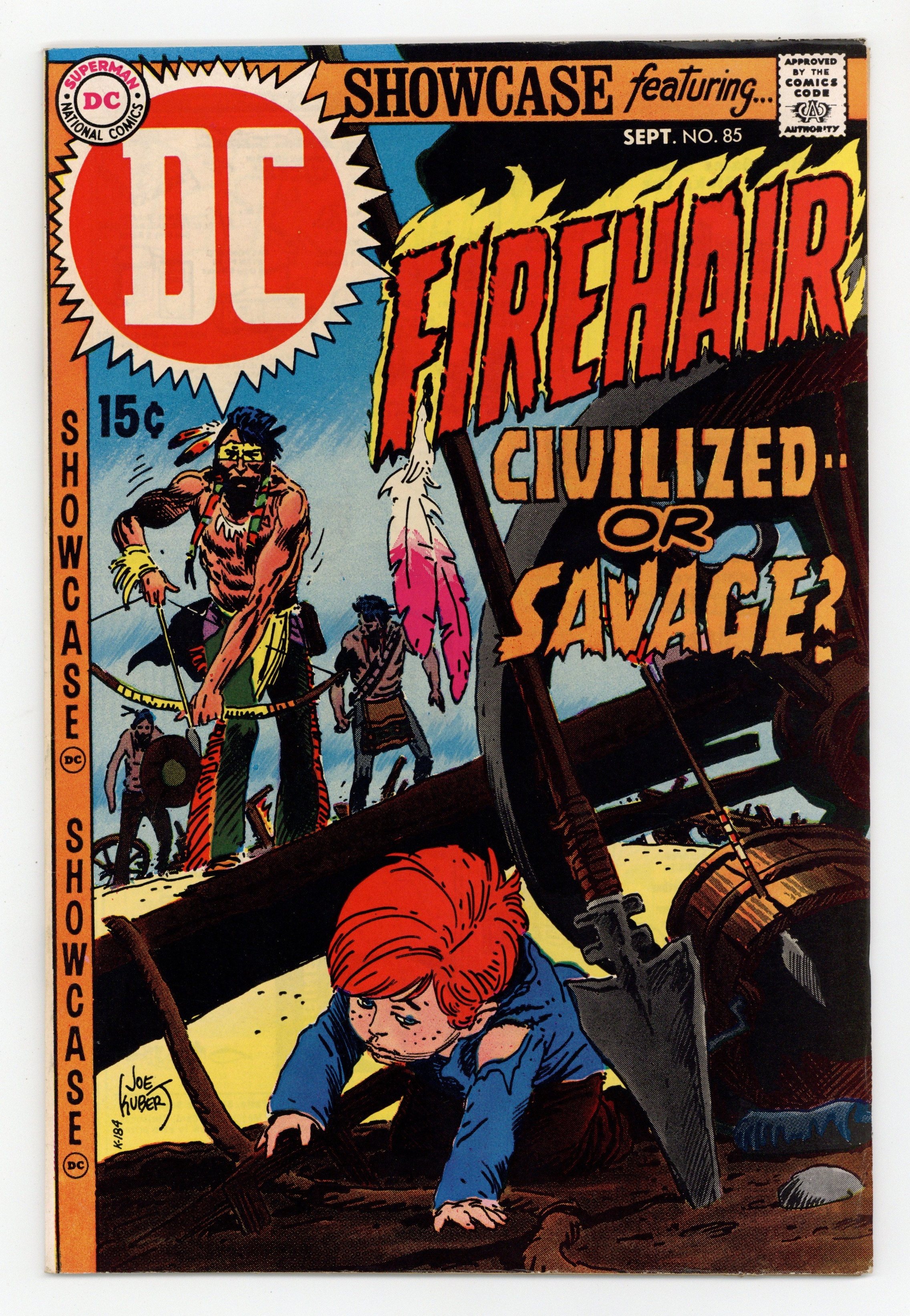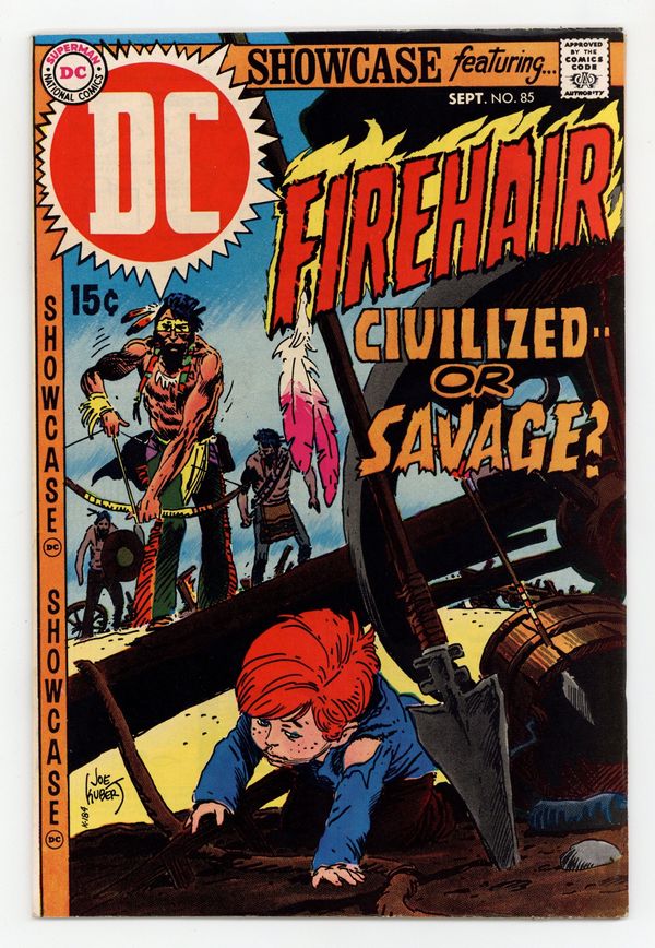 Cover by Joe Kubert. "I Don't Belong Here - I Don't Belong There," script and art by Joe Kubert; In the early 1800s, there is a great meeting of the Blackfoot Tribe; Their great chief, buffalo-garbed shaman named Grey Cloud, tells the tribe of the coming palefaces and their bringing of sickness and death; But he also sees a hero rising from death; one that will not look like any Indian, and will be despised by his own people; Hours later, the tribe rides forth to fight the palefaces; They assault a wagon train, and over the course of the fight, one brave grabs a small red-haired baby; The brave is about to kill the baby when Chief Grey Cloud stops him; Grey Cloud makes a promise to raise the red-haired child as his own; Grey Cloud keeps his promise, and over the years the baby grows up to become a teenager; Named Firehair, the young boy learns of the ways of the Blackfoot Tribe. Background on Firehair by Joe Kubert. An illustration of Native American sign language, art by Kubert. 36 Pages, Full Color. Cover price $0.15.