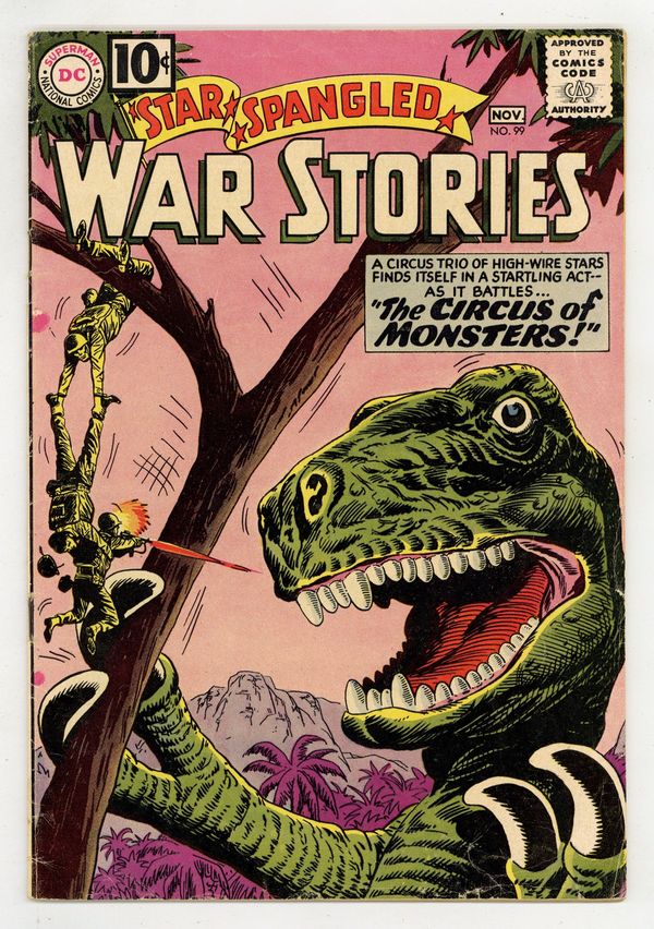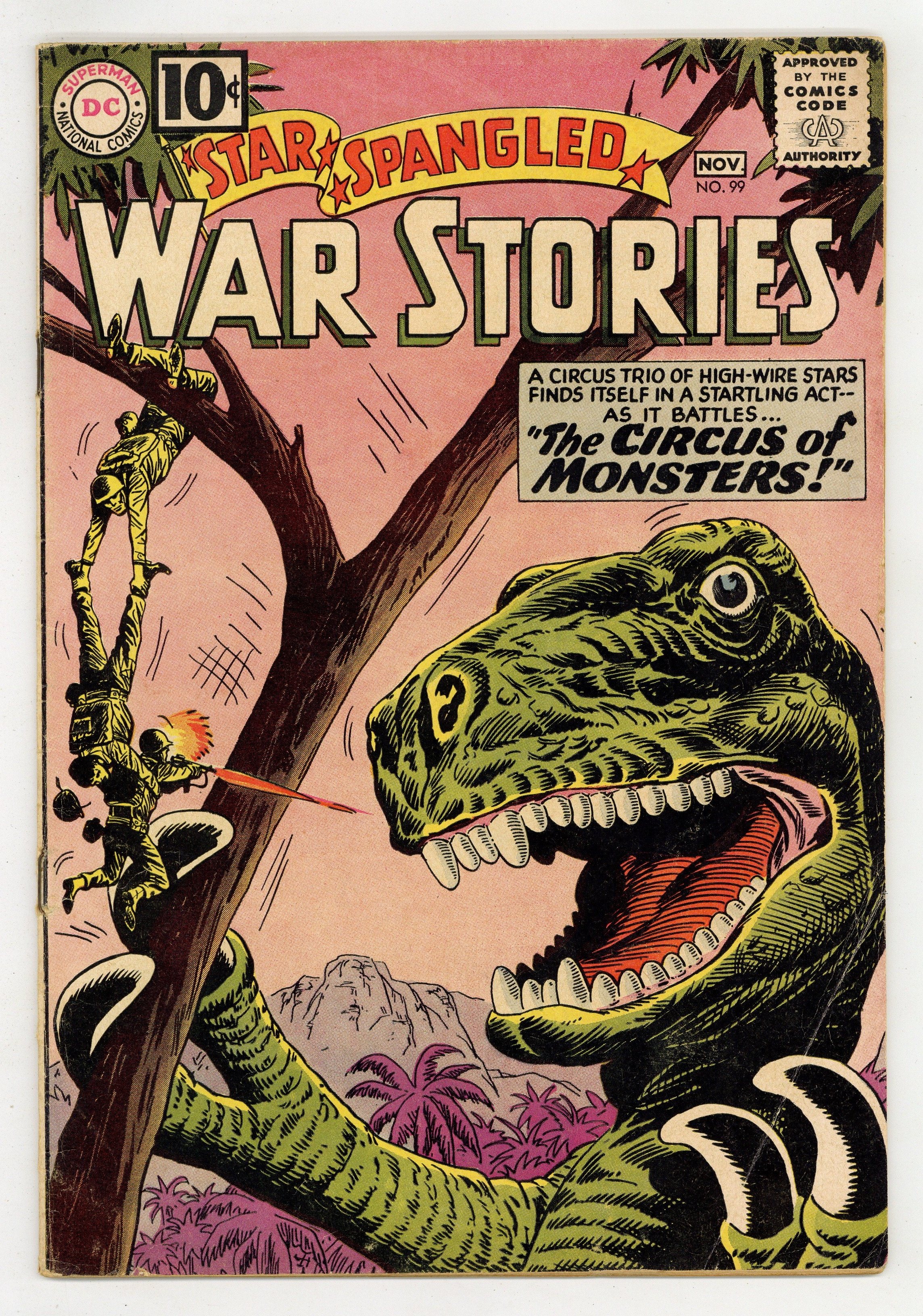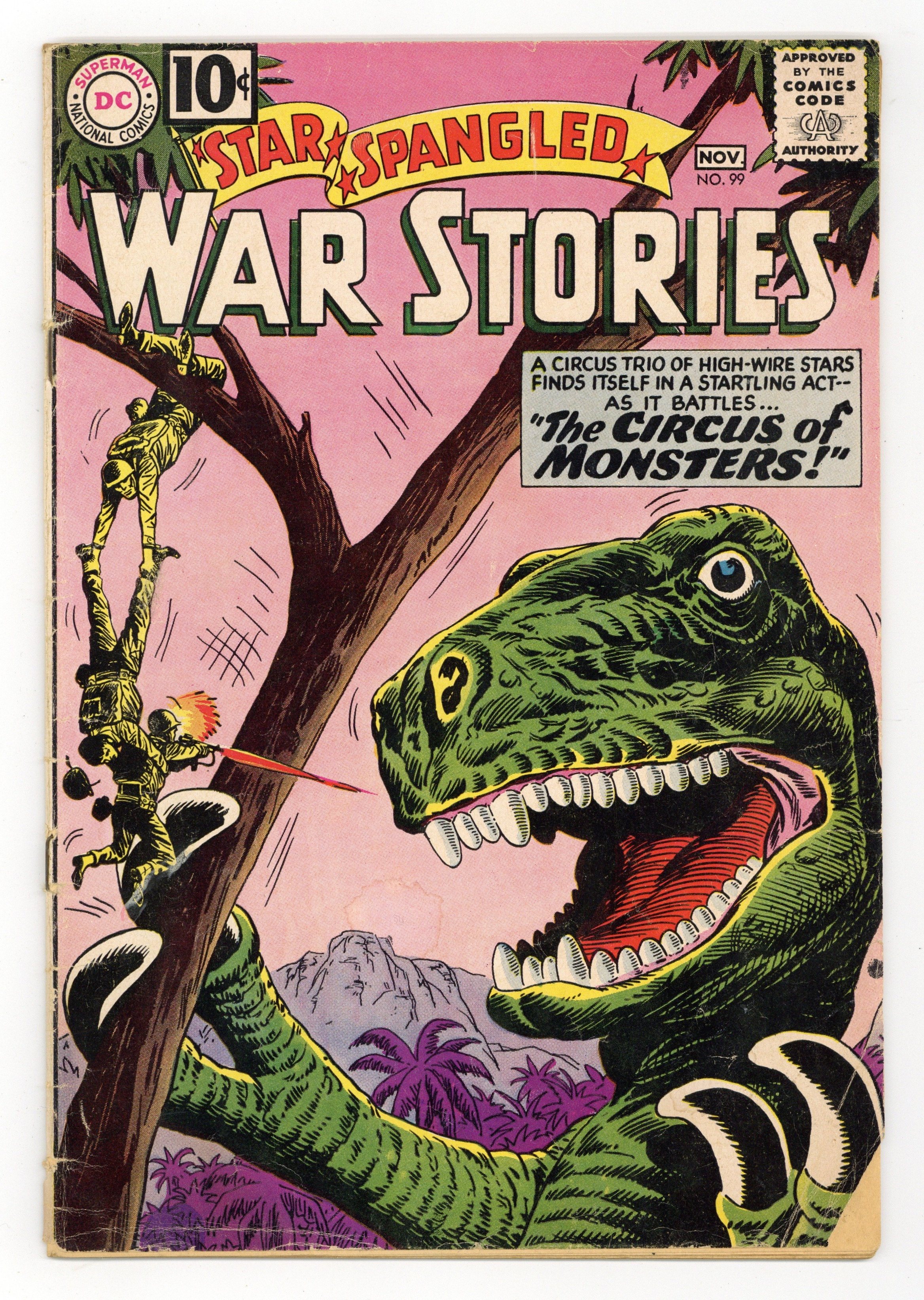 Cover art by Jerry Grandenetti. The Circus of Monsters! featuring War That Time Forgot, script by Robert Kanigher, pencils by Ross Andru, inks by Mike Esposito. Blind Tank, script by Hank Chapman, art by Russ Heath. Double Jinx Fort, script by Bob Haney, art by Jack Abel. 36 Pages, Full Color. Cover price $0.10.