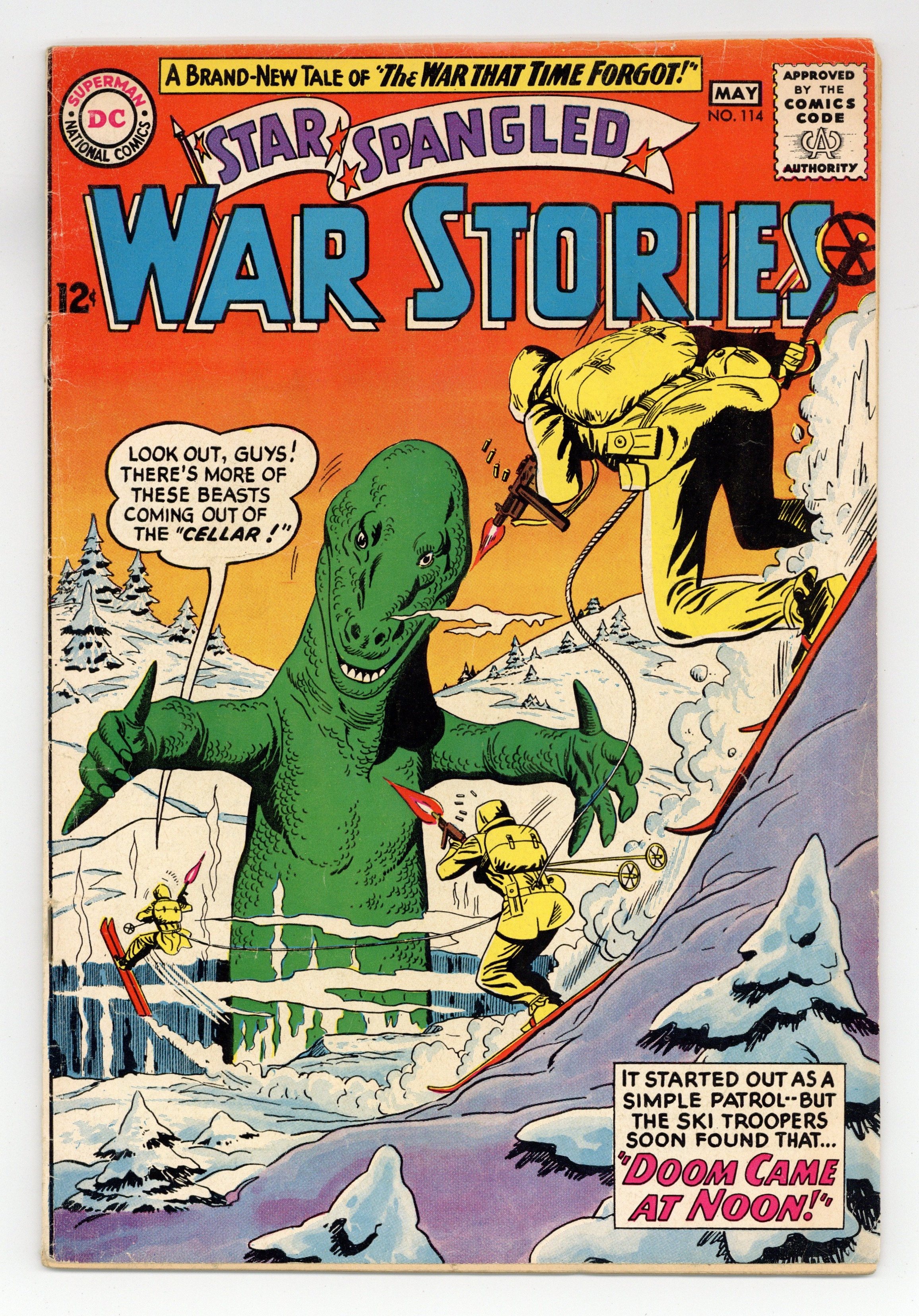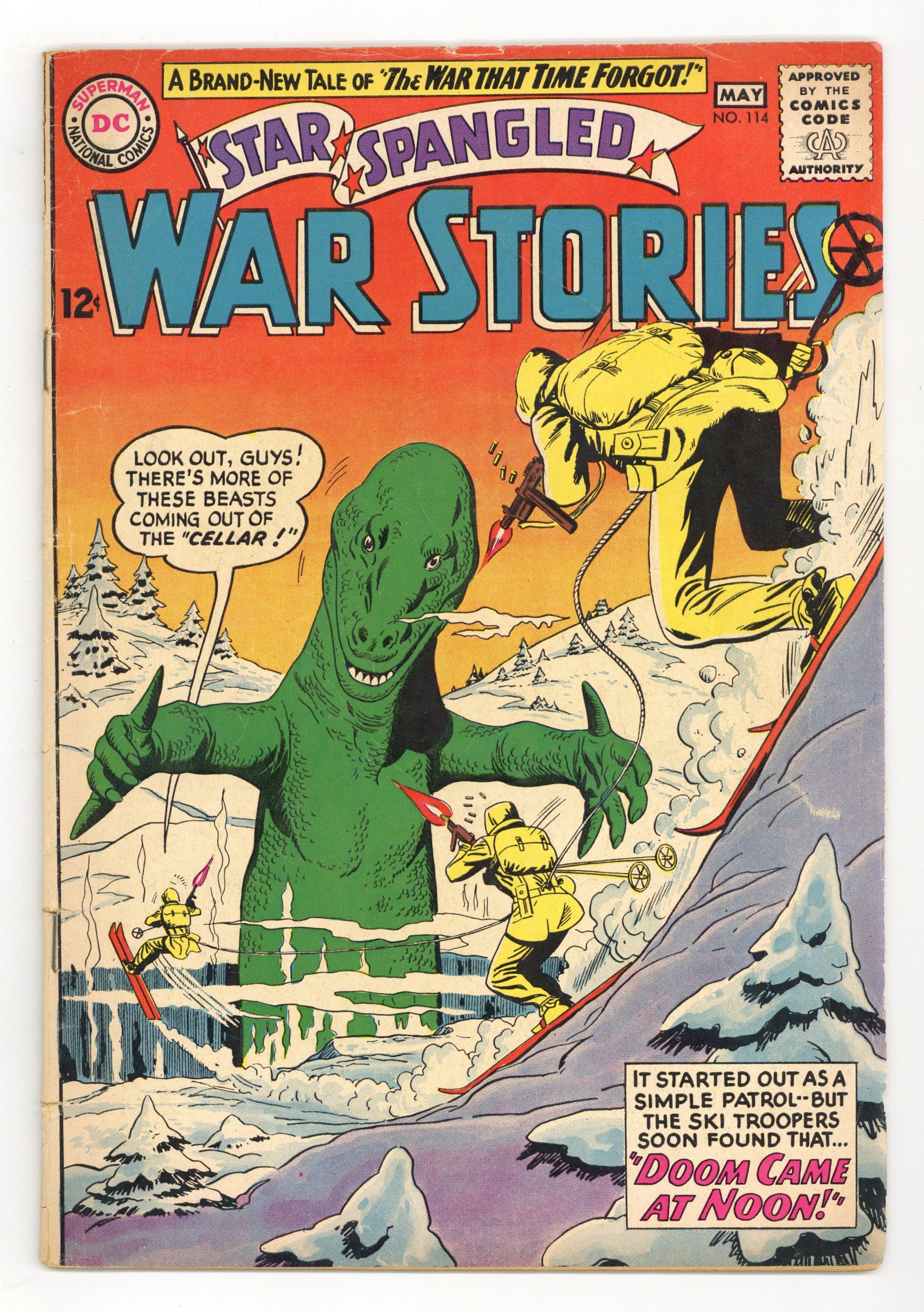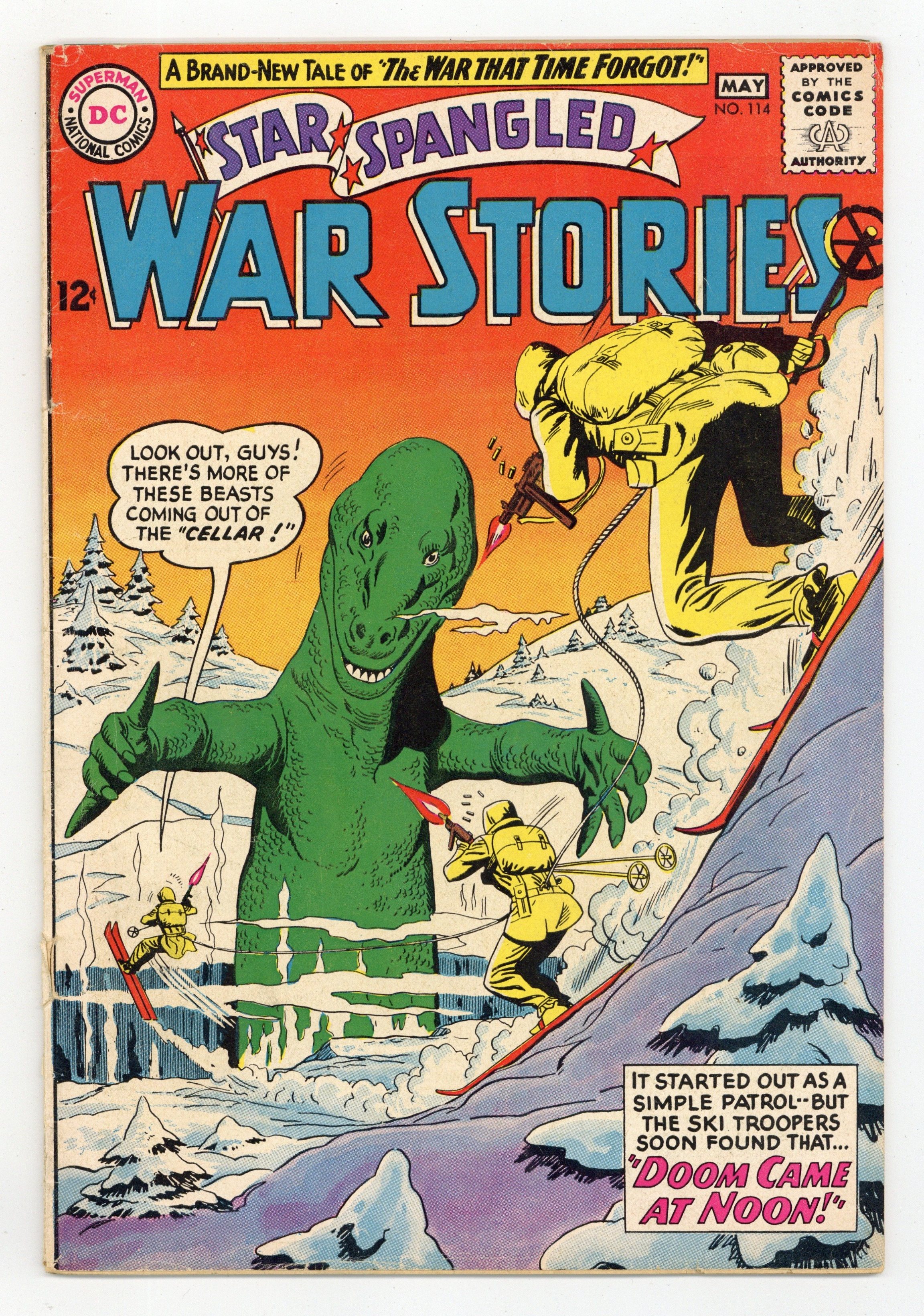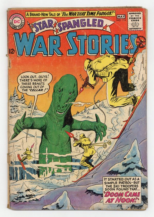 Cover pencils by Ross Andru, inks by Mike Esposito. Doom Came at Noon! featuring The War That Time Forgot, script by Robert Kanigher, pencils by Ross Andru, inks by Mike Esposito. Crash Boat Skipper, script by Bob Haney, art by Jack Abel. Air Force War Mottoes, script and pencils by Morris Waldinger, inks by Tom Nicolisi. 36 Pages, Full Color. Cover price $0.12.