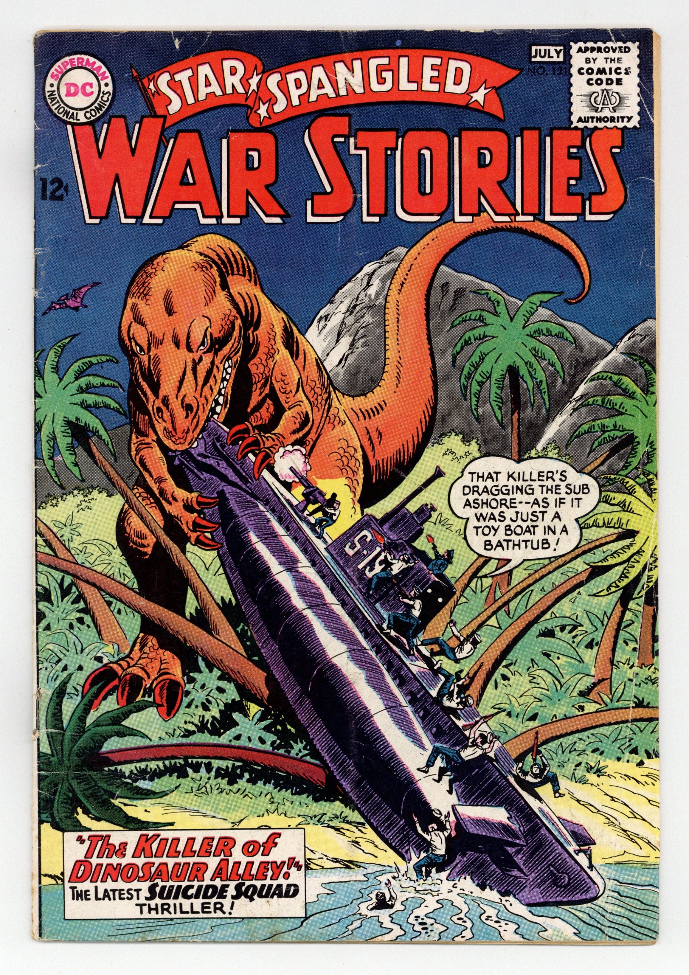 Cover pencils by Ross Andru, inks by Mike Esposito. The Killer of Dinosaur Alley featuring Suicide Squad, script by Robert Kanigher, pencils by Ross Andru, inks by Mike Esposito. Wanted: 4 Tiger Tanks, script by Hank Chapman, art by Gene Colan. 36 Pages, Full Color. Cover price $0.12.