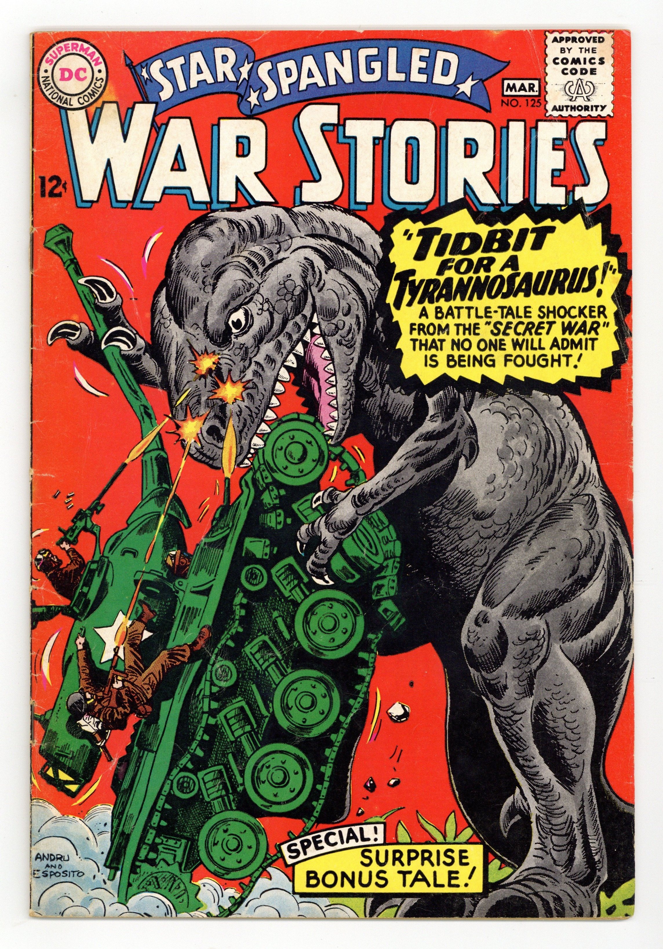 Dinosaur issue. Cover pencils by Ross Andru, inks by Mike Esposito. Tidbit for a Tyranosaurus featuring Suicide Squad (Mac & Joe/Reed & Mac), script by Robert Kanigher, pencils by Ross Andru, inks by Mike Esposito. A Navy Named Smith, script by Hank Chapman, art by Jack Abel. Army Crests filler page, script and pencils by Morris Waldinger, inks by Tom Nicolisi. Cap's Hobby Center hobby tips by Henry Boltinoff. 36 Pages, Full Color. Cover price $0.12.