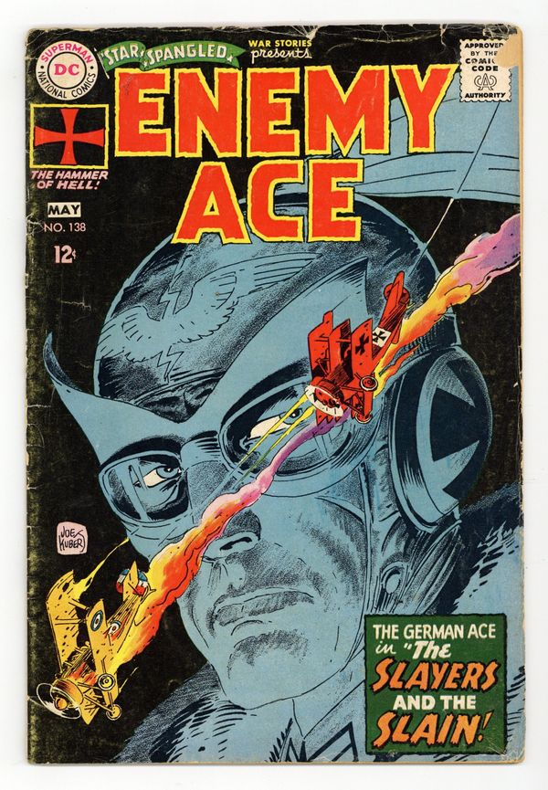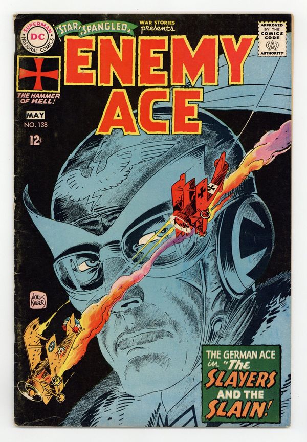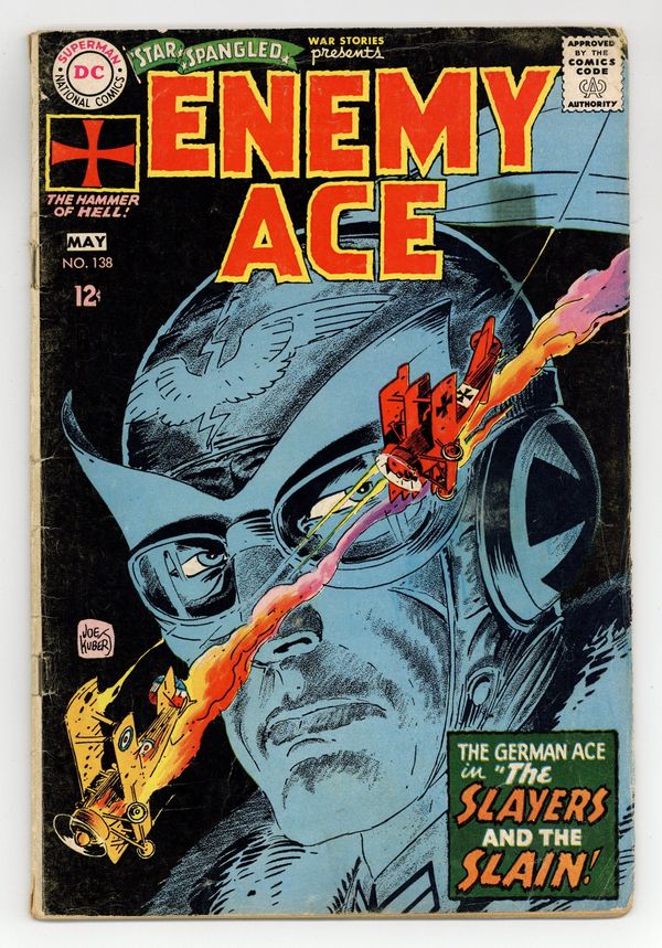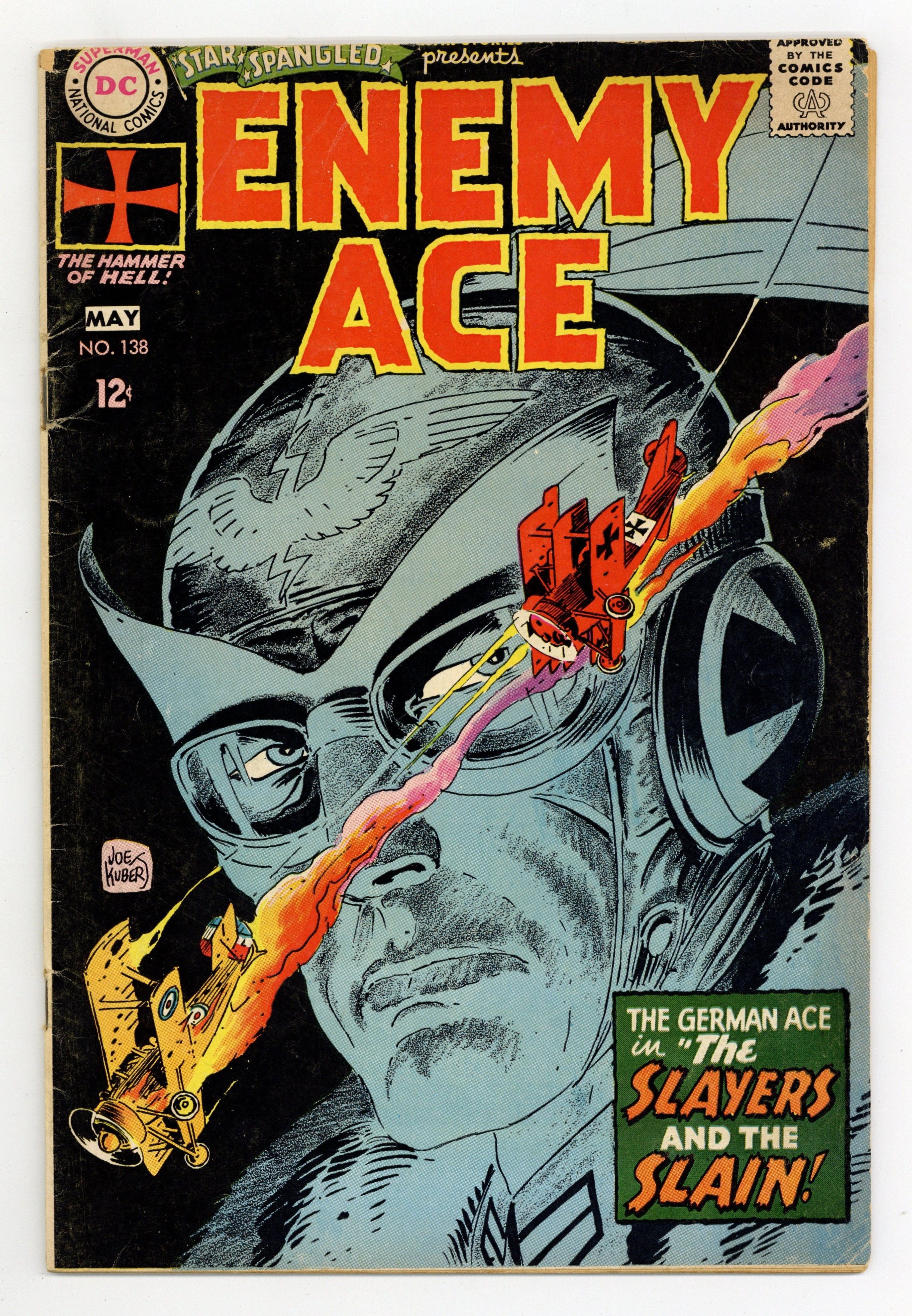 Cover art by Joe Kubert. The Slayers and the Slain! featuring Enemy Ace, script by Robert Kanigher, art by Joe Kubert; Enemy Ace faces The Hangman, the top French ace and his all-black Spad, and barely survives being shot down. Deadman promo ad, art by Neal Adams. Ad for Flash 178, pencils by Ross Andru, inks by Mike Esposito. Direct Currents promo ads, art by Neal Adams. 36 Pages, Full Color. Cover price $0.12.