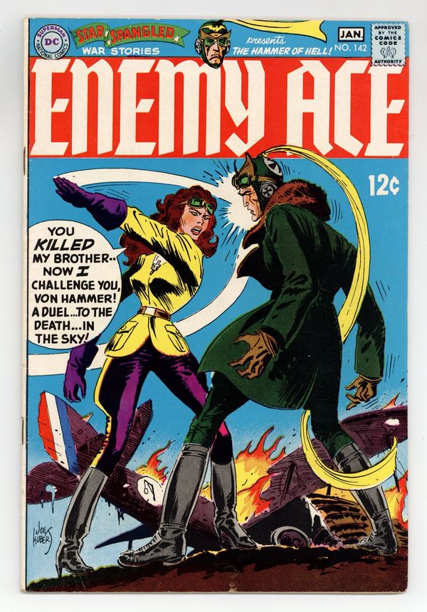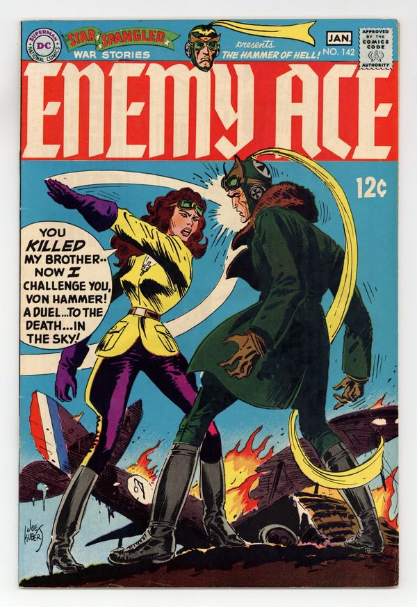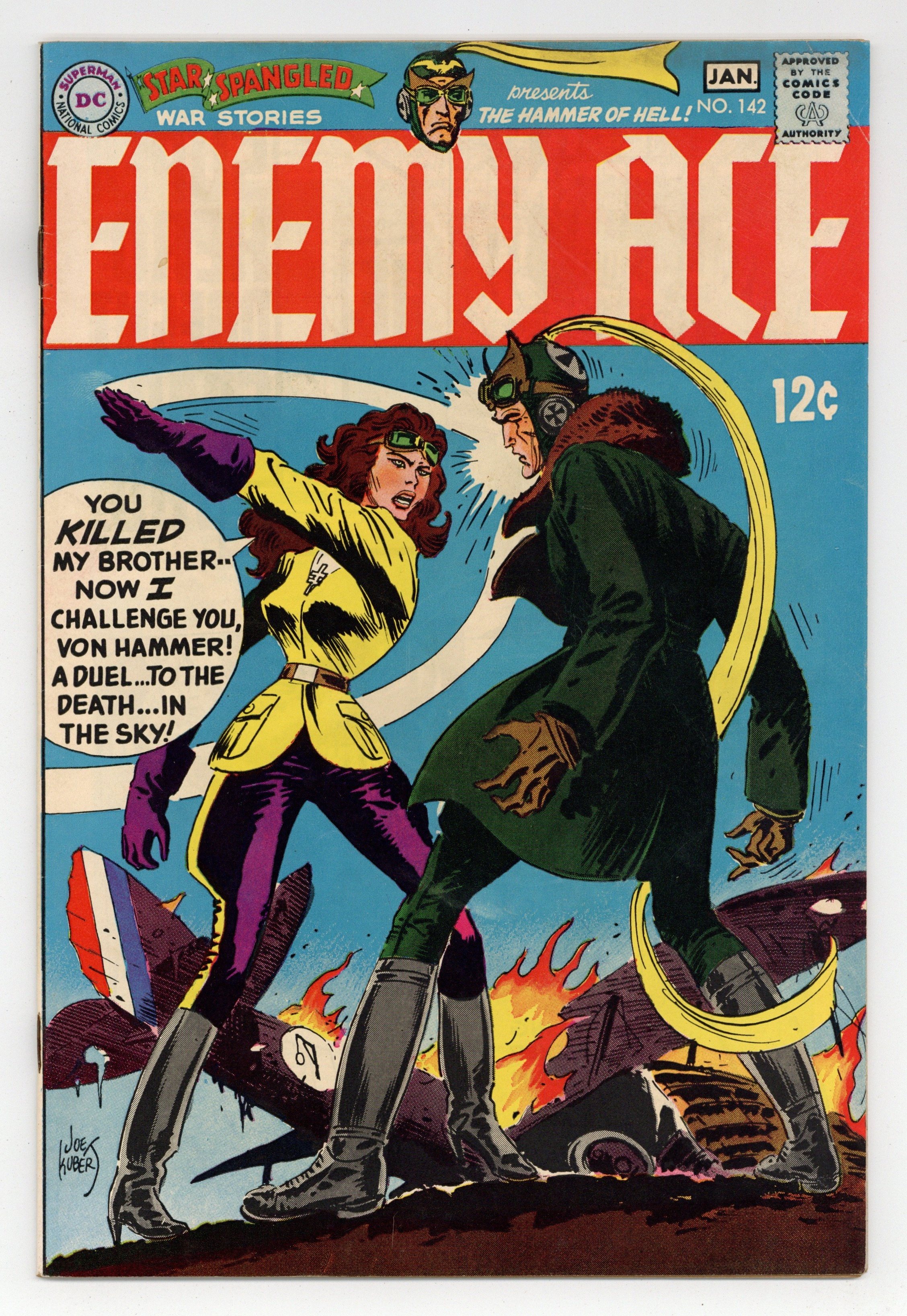 $16.00Cover art by Joe Kubert. Ad for Green Lantern #65 and The Brave and the Bold #81, pencils by Mike Sekowsky and Neal Adams, inks by Joe Giella and Neal Adams. Vengeance is a Harpy! starring Enemy Ace, script by Robert Kanigher, art by Joe Kubert; When von Hammer shoots down The Hangman, his sister Denise takes to the skies in an attempt to seek revenge. Captain Action and Action Boy Meet Dr. Evil toy ad, art by Kurt Schaffenberger. Ad for Superman #212, pencils by Curt Swan, inks by Mike Esposito. 36 Pages, Full Color. Cover price $0.12.