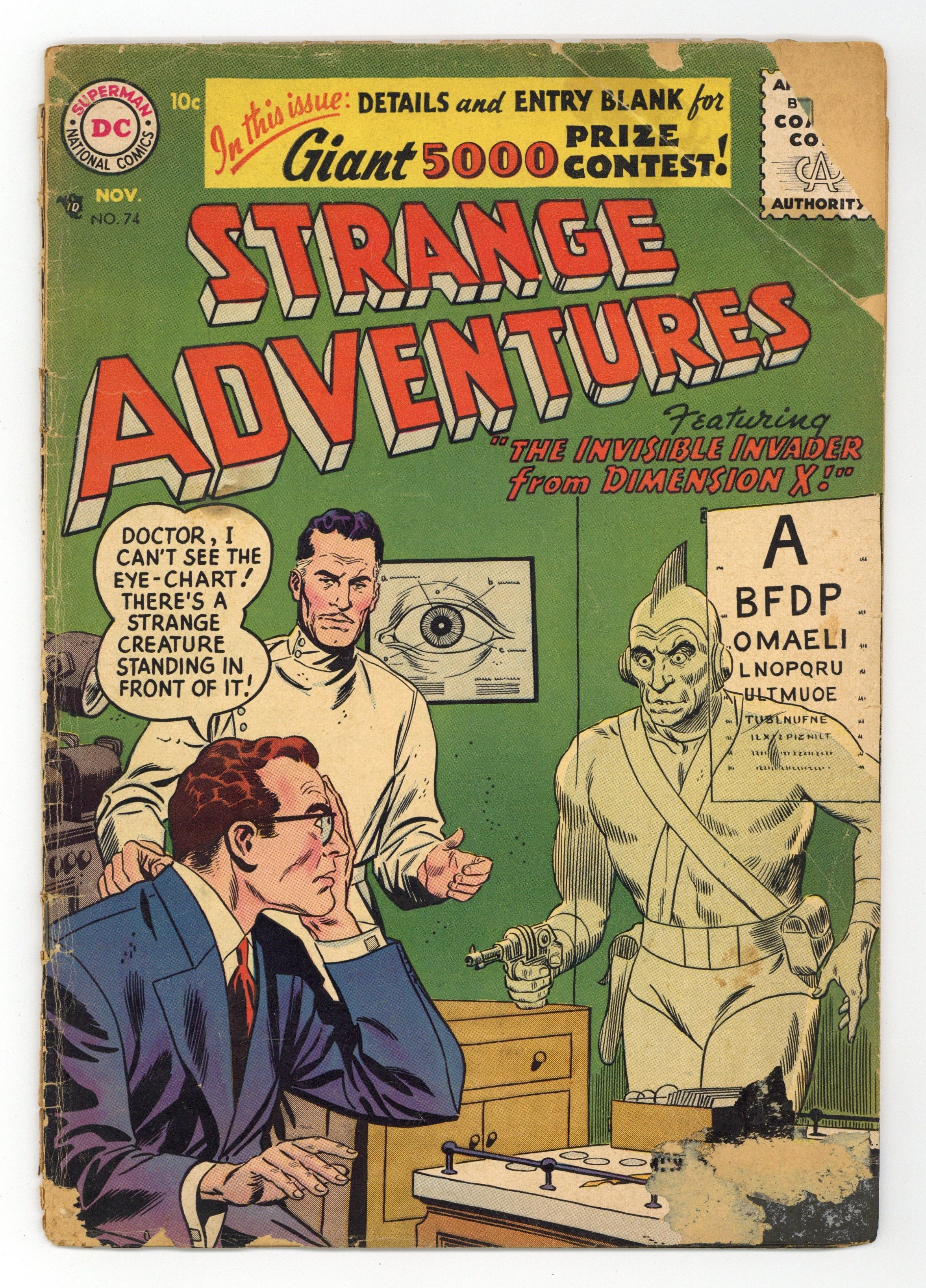 "The Invisible Invader From Dimension X" (art by Carmine Infantino), "The Metal Spy From Space," "Earth's Secret Visitors," and "Build-it-Yourselt Spaceship!" (pencils by Gil Kane). Ruben Moreira cover? 36 Pages, Full Color. Cover price $0.10.