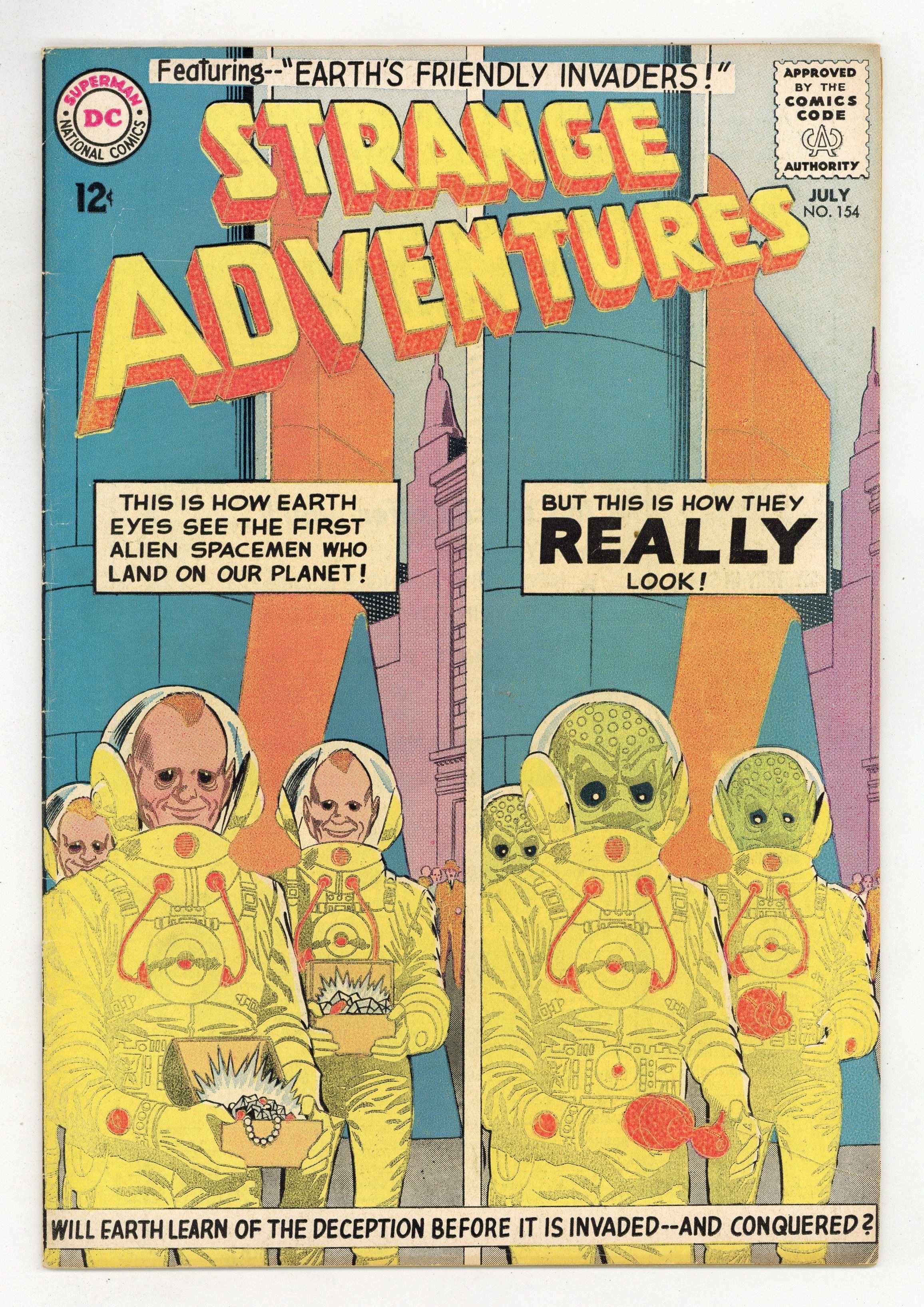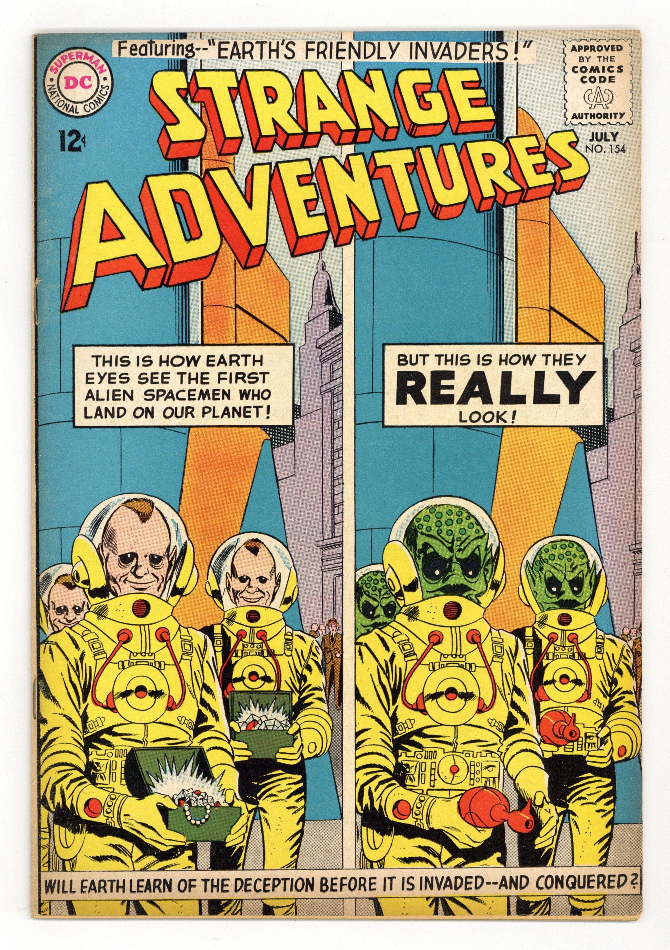 "Earth's Friendly Invader's!" (pencils by Gil Kane, inks by Wally Wood); "The Beast That Broke the Time Barrier!" (art by Sid Greene); and "Escape-Artist of Space!" (pencils by Carmine Infantino, inks by Murphy Anderson). 36 Pages, Full Color. Cover price $0.12.