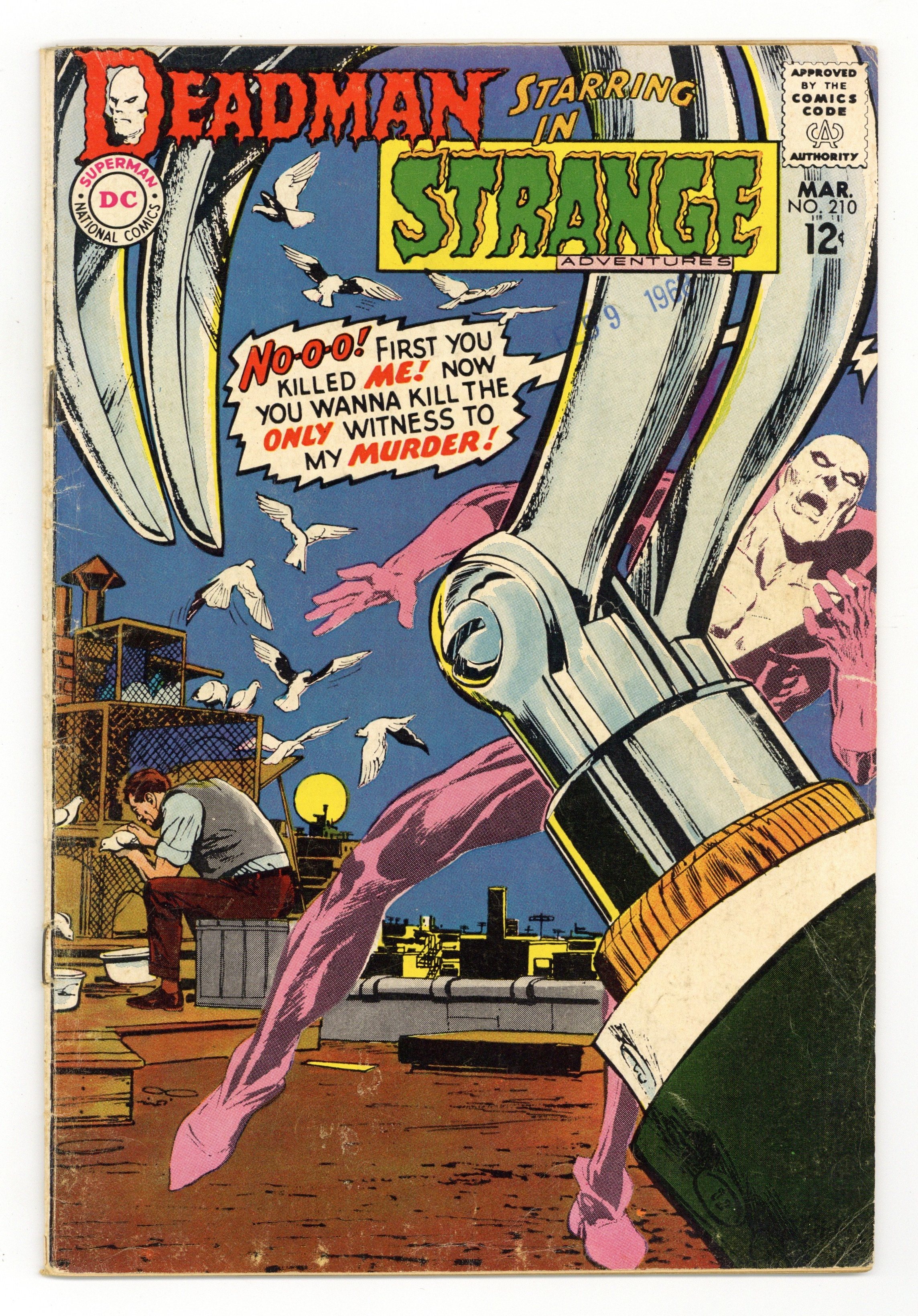 Deadman stars in "Hide and Seek." Art by Neal Adams. Reprint back-up story: "Designs for Disaster." 2-page "Just Imagine" reprint (Virgil Finlay art). Adams cover. 36 Pages, Full Color. Cover price $0.12.